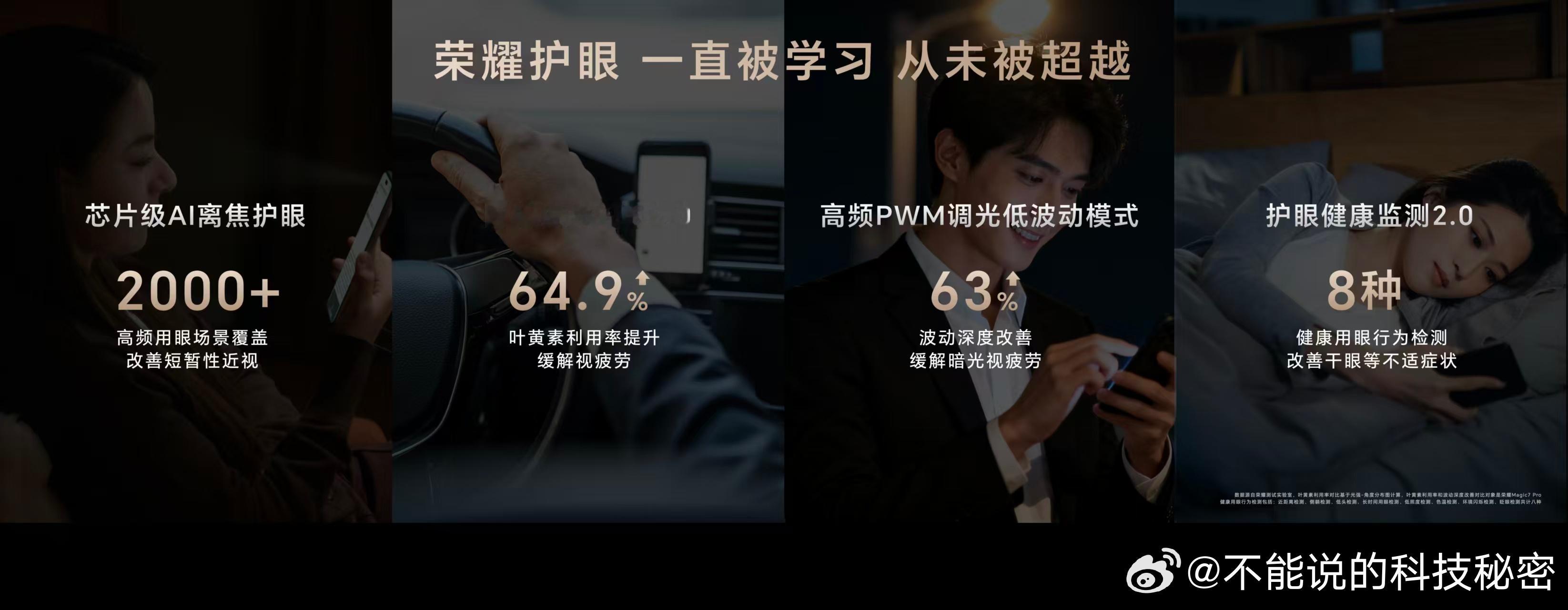 荣耀Magic8 系列行业首发莱茵TÜV全局护眼5.0认证,引领个性化全局护眼新时代。
