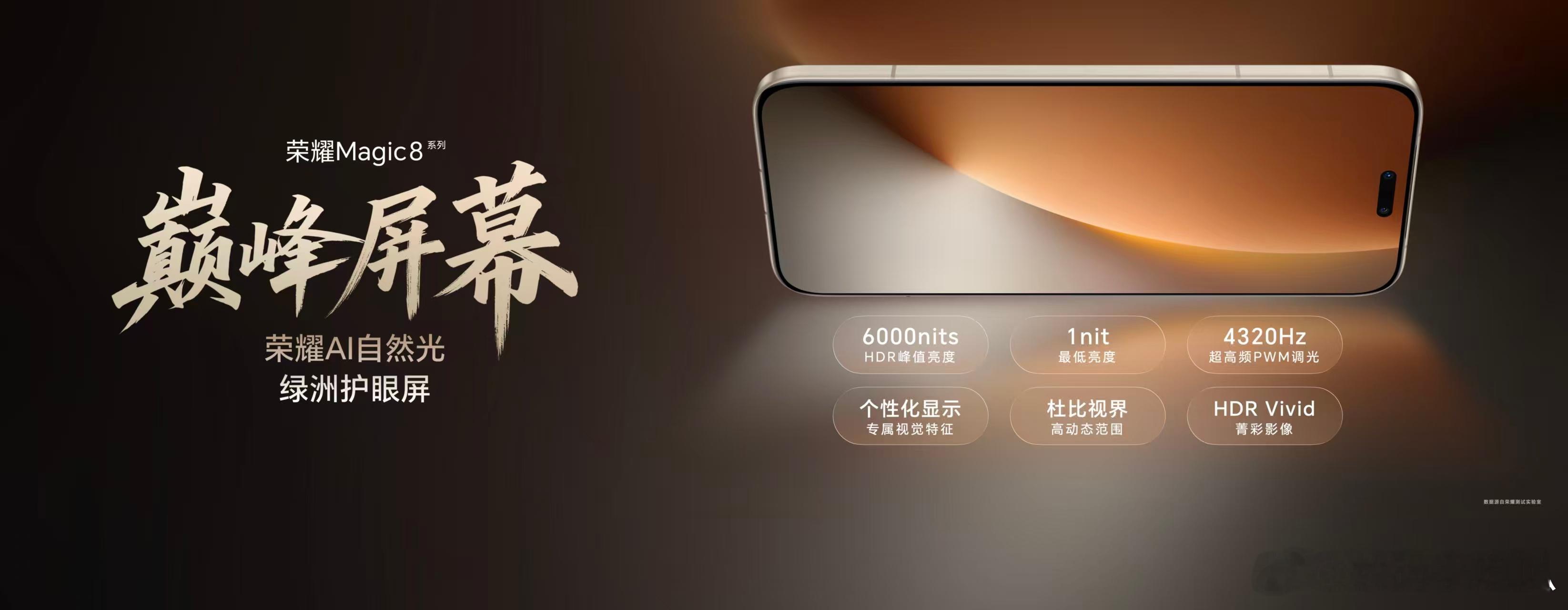 荣耀Magic8 Pro版配备旭日金砂、天青色、雪域白、绒黑色,搭载全新等深四微曲屏——既有直屏的通透视觉,又兼具曲屏的柔和握感,是今年少有兼顾观感与手感的旗舰设计。