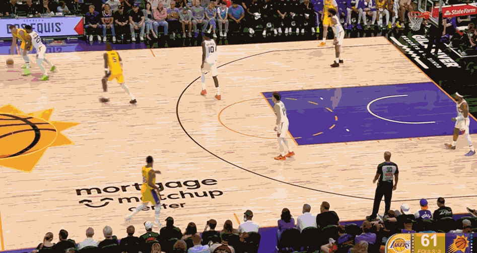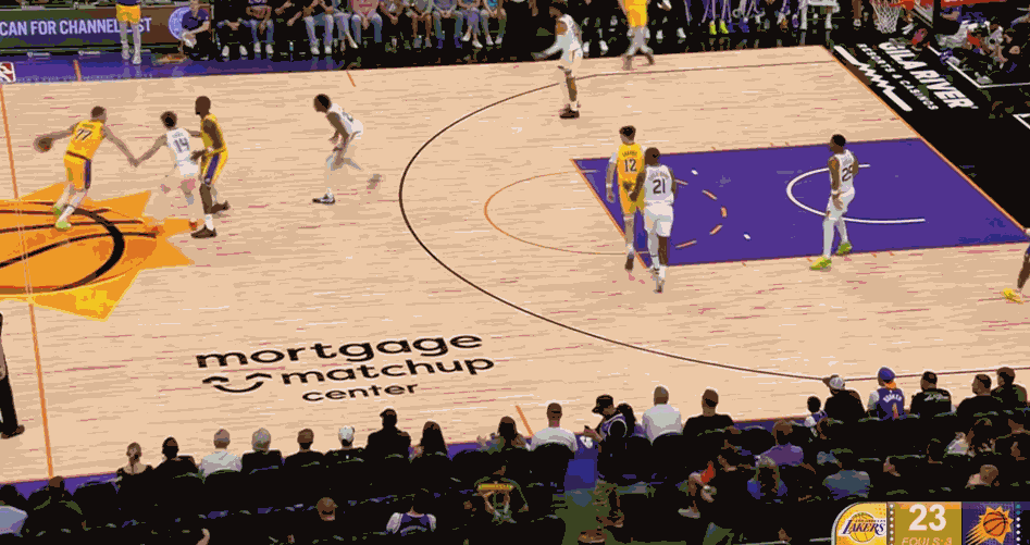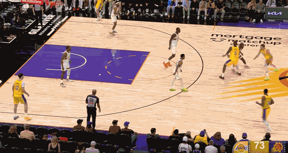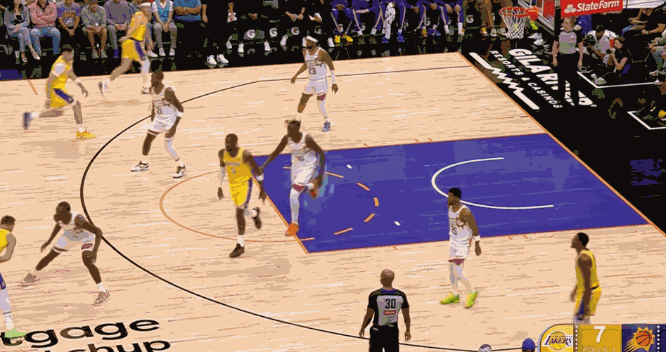 艾顿的下顺威胁问题,没有冲击力,持球人进入腹地后中锋还没到位,形成不了抛传两威胁,今天东契奇和里夫斯有不少球都想找他,但最终变成了自己攻,里夫斯在场上因艾顿没到位传出失误后,还叫出了声。队里磨合要互相适应,东契奇们在挡拆形成后最好要稍等片刻再进入腹地。最后一图是正常下顺持球人与中锋该在的位置,大致是条平行线。