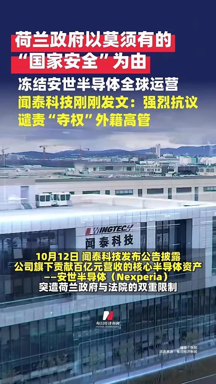 荷兰哪来的权力? 安世半导体现在是闻泰科技100%控股子公司,被美国制裁与否,