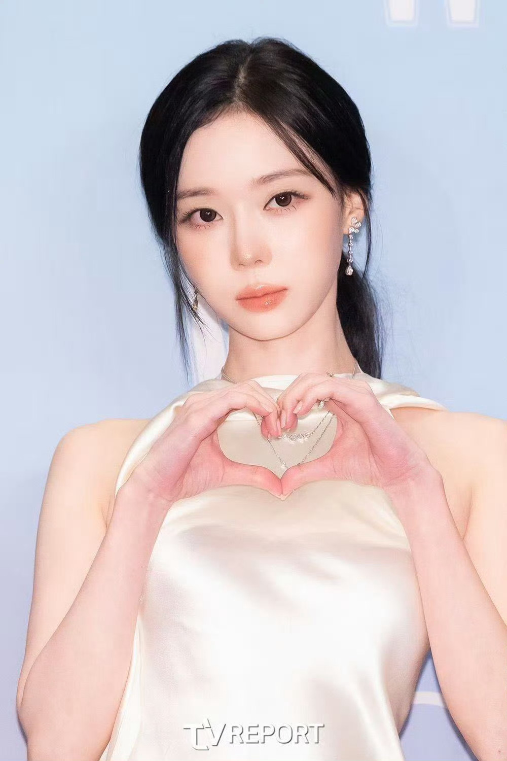 优雅的白色缎面礼裙来自Ralph Lauren,佩戴的Chaumet珠宝,几缕发丝随风拂面,温婉动人🤍