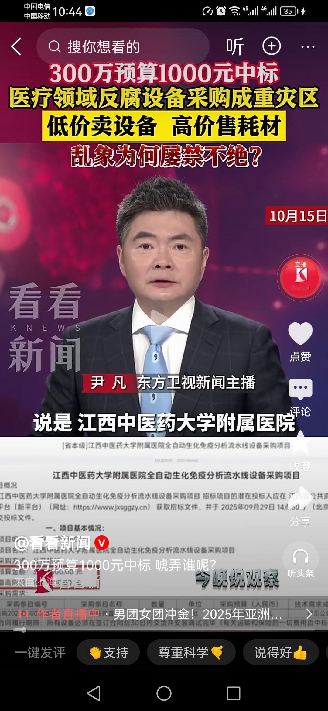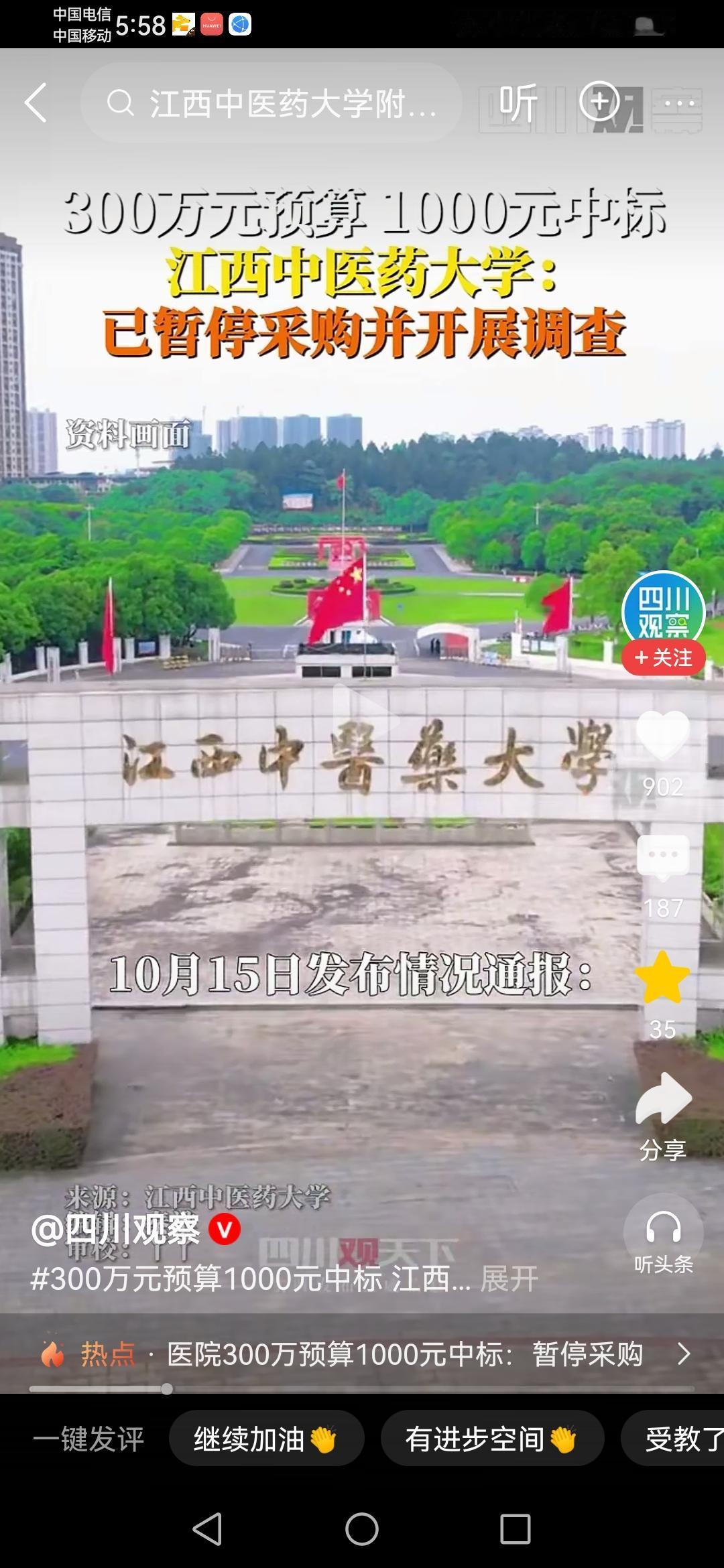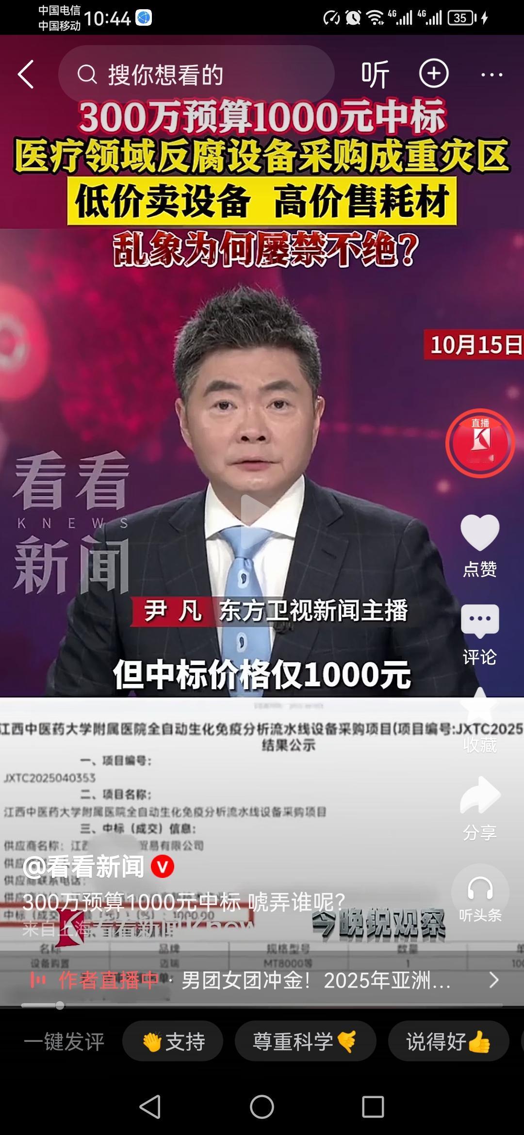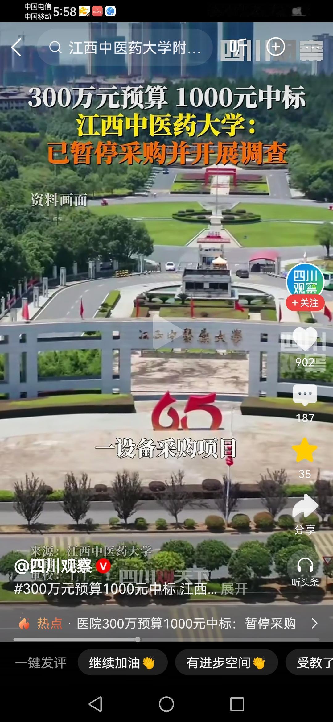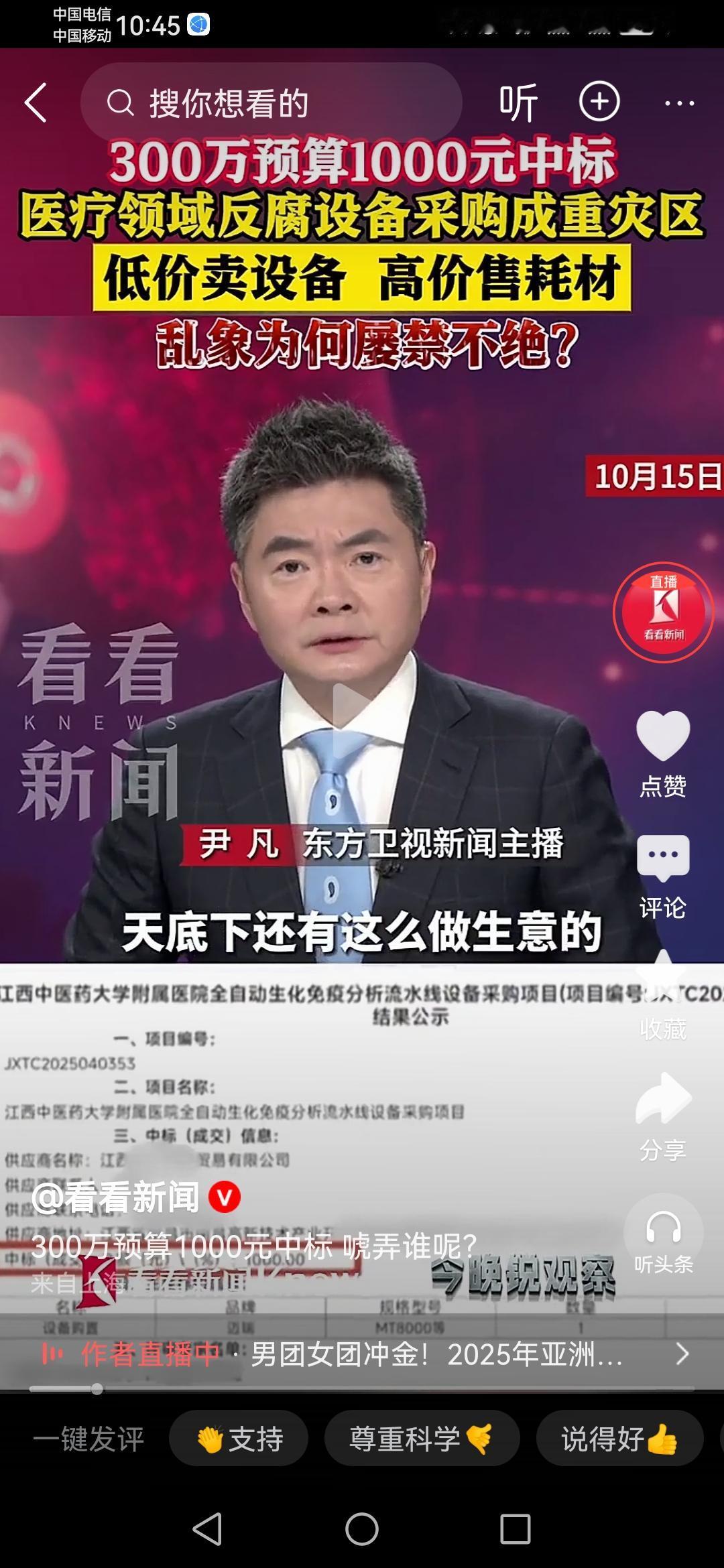 这是连装都不愿意装了吗? 江西中医药大学附属医院一个300万预算的医疗设备采购项目,被另外一家公司以1000块的超低价中标! 这样神奇的操作,就算是一个普通人有最基本上的常识,都知道这里面其实就是有猫腻! “低价卖设备高价卖耗材”,最后全是去医院看病人的来买单,天下没有免费的午餐。最关键是,这样的招标还有评标到最后的中标,究竟是如何一路绿灯通过审核的呢? 真的是太神了啊!目前这个神奇的中标已经被暂停接受调查!医院检查争议 医院采购 江西中医药大学