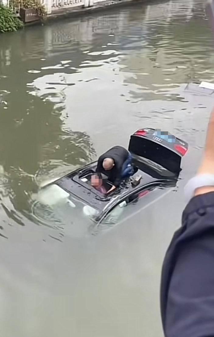 【路人果断跳河砸车窗救出被困者】退役军人还原跳河救人过程10月14日,江苏泰州