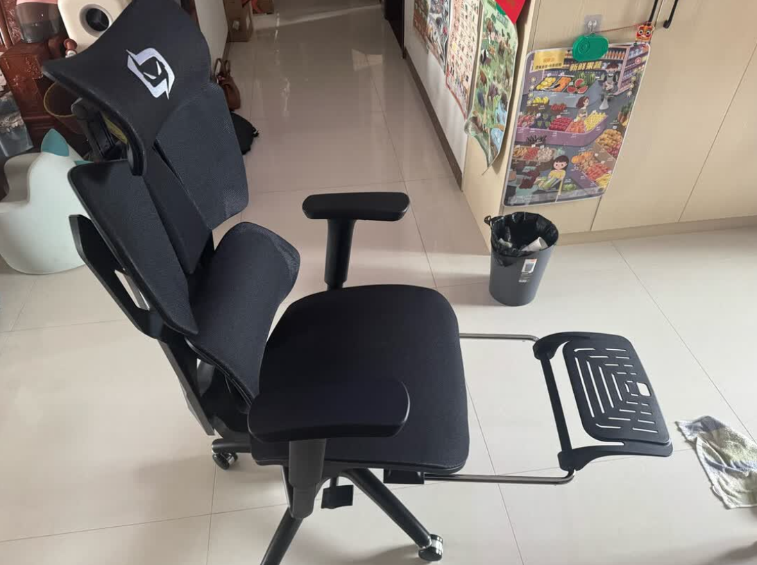 腰靠、扶手和靠背均可独立调节,操作直观。坐深和后仰锁定功能覆盖办公和休息需求。初次使用需适应分段支撑感,新椅略有气味,建议通风。