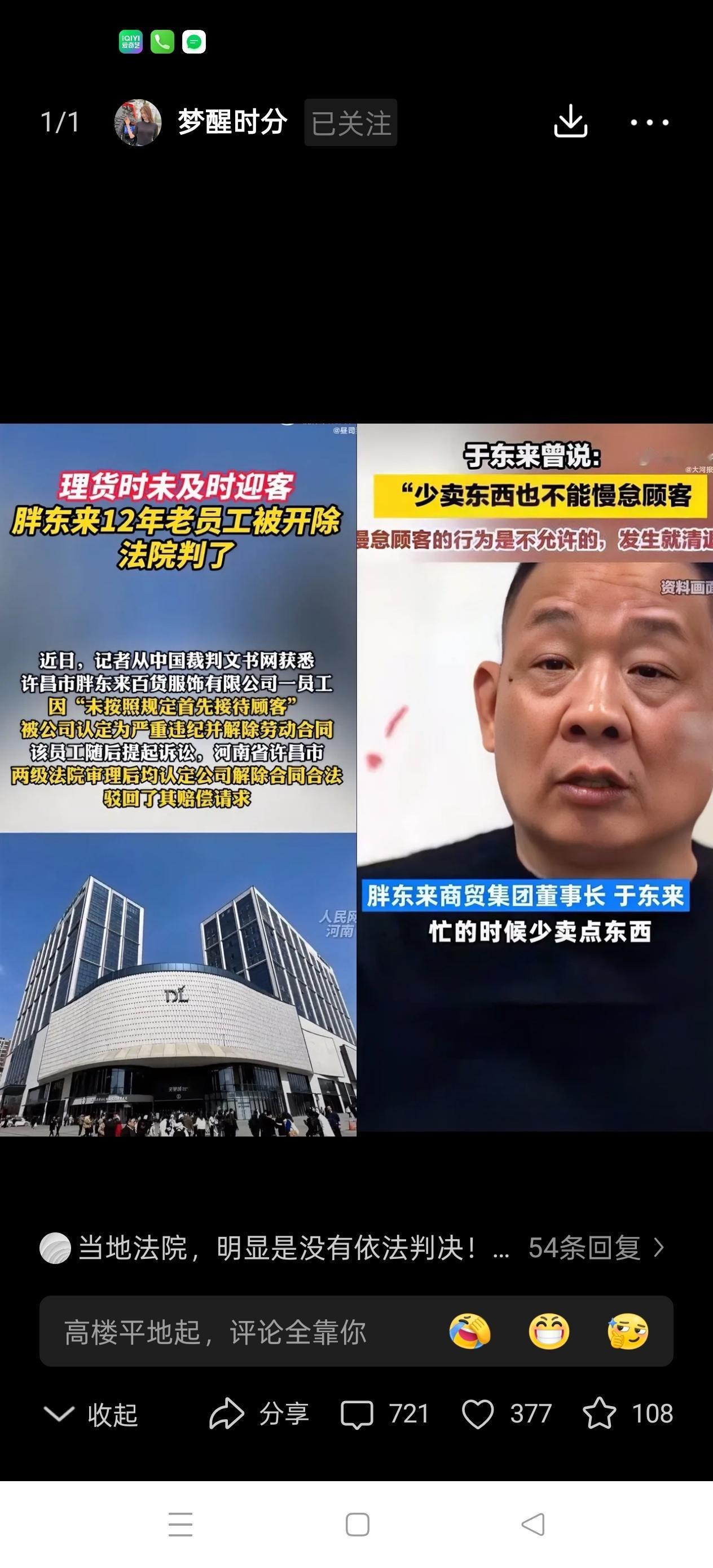 胖东来的员工今晚恐怕要睡不着了,不是怕丢饭碗,是被“12年老员工因3秒没招呼顾客就被踢出门”吓清醒了——法院还站胖东来,0赔偿! 原来所谓“服务铁律”真能把人瞬间判死刑:货架旁理货,顾客进门3秒没喊欢迎,就被监控截图+店长通报=严重违纪,直接卷铺盖。 难怪评论区炸锅——“对刑满释放员工送温暖,对12年忠臣下死手”“法院把劳动法读成老板家法?” 更离谱的是,两审都认定“规章制度写得够细=员工签字=合法解除”,一分钱不赔;法律博主翻出判决,同款案例在别处多数判2N,到了胖东来就成了“企业自治”免死金牌。 高工资换的是“微笑3秒”还是“脖子套绳”?当“极致服务”变成算法式秒回,是否已经失去了人情味?