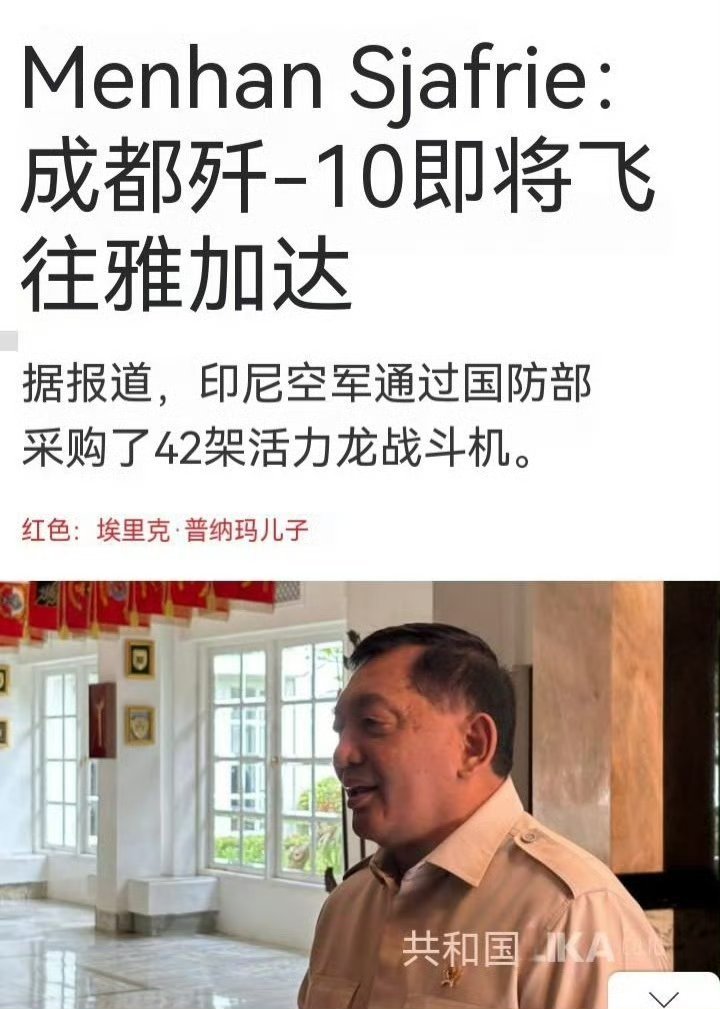 印尼国防部长宣布将从东大购买42架歼10战斗机 。