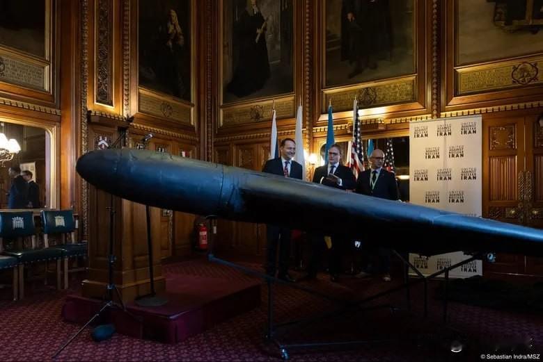 波兰外交部长拉多斯瓦夫·西科尔斯基带着俄罗斯的“天竺葵”无人机来到英国首都伦敦,