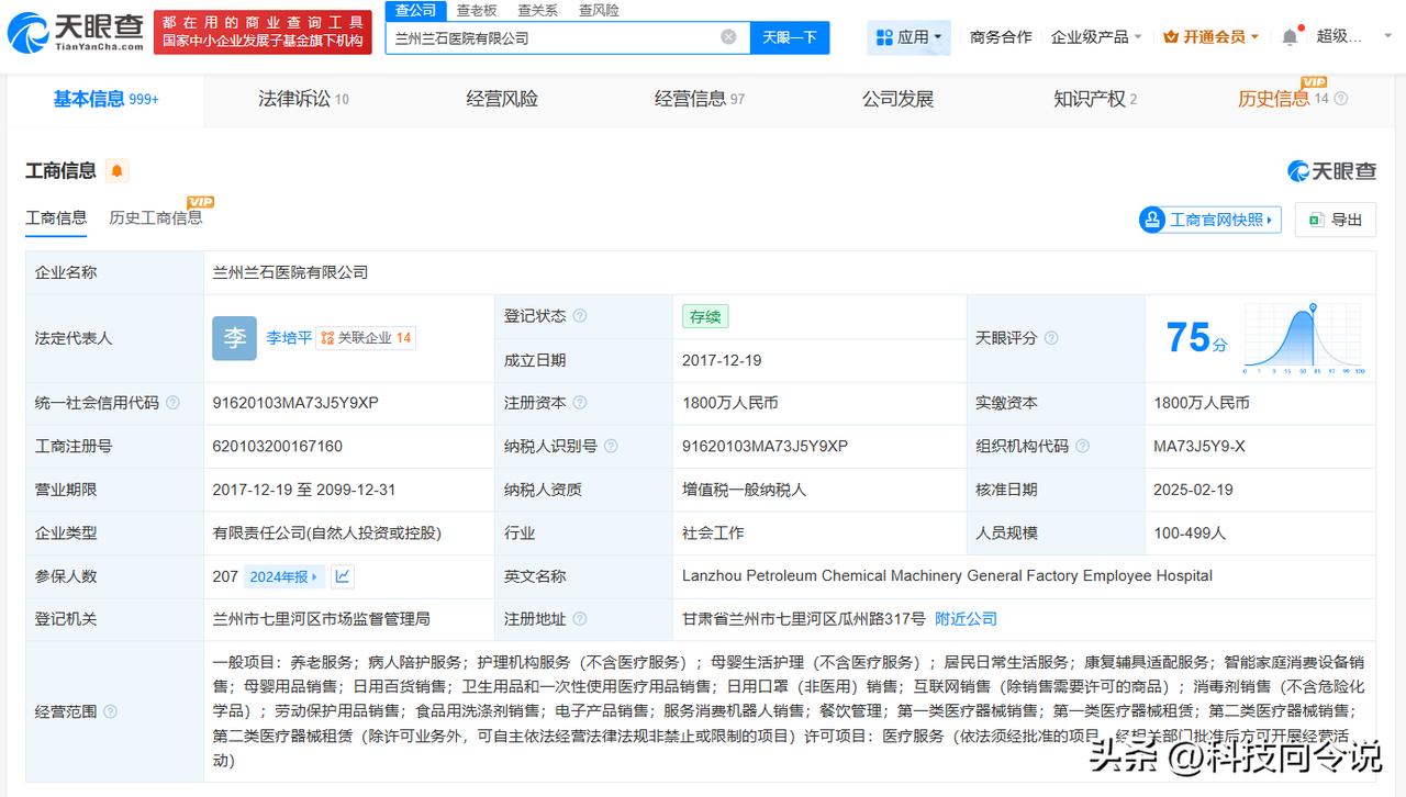 【揭秘发喜报庆祝门诊人数创佳绩医院 庆祝门诊人数创佳绩医院曾涉多起诉讼】医院发喜报庆祝门诊人数创佳绩 据媒体报道,近日,网传兰州兰石医院一则“喜报”受到关注。该医院一位内部人士称,这份“喜报”中的诊疗数据属实,“确实用词不当,我院正在积极处理”。 天眼查App显示,兰州兰石医院有限公司成立于2017年12月,法定代表人为李培平,注册资本1800万人民币,经营范围包括养老服务、病人陪护服务、卫生用品和一次性使用医疗用品销售等,由李芸和李培平分别持股51%、49%。风险信息显示,该医院曾涉及多起医疗损害责任纠纷,并于近期因建设工程合同纠纷被起诉。 天眼查信息: