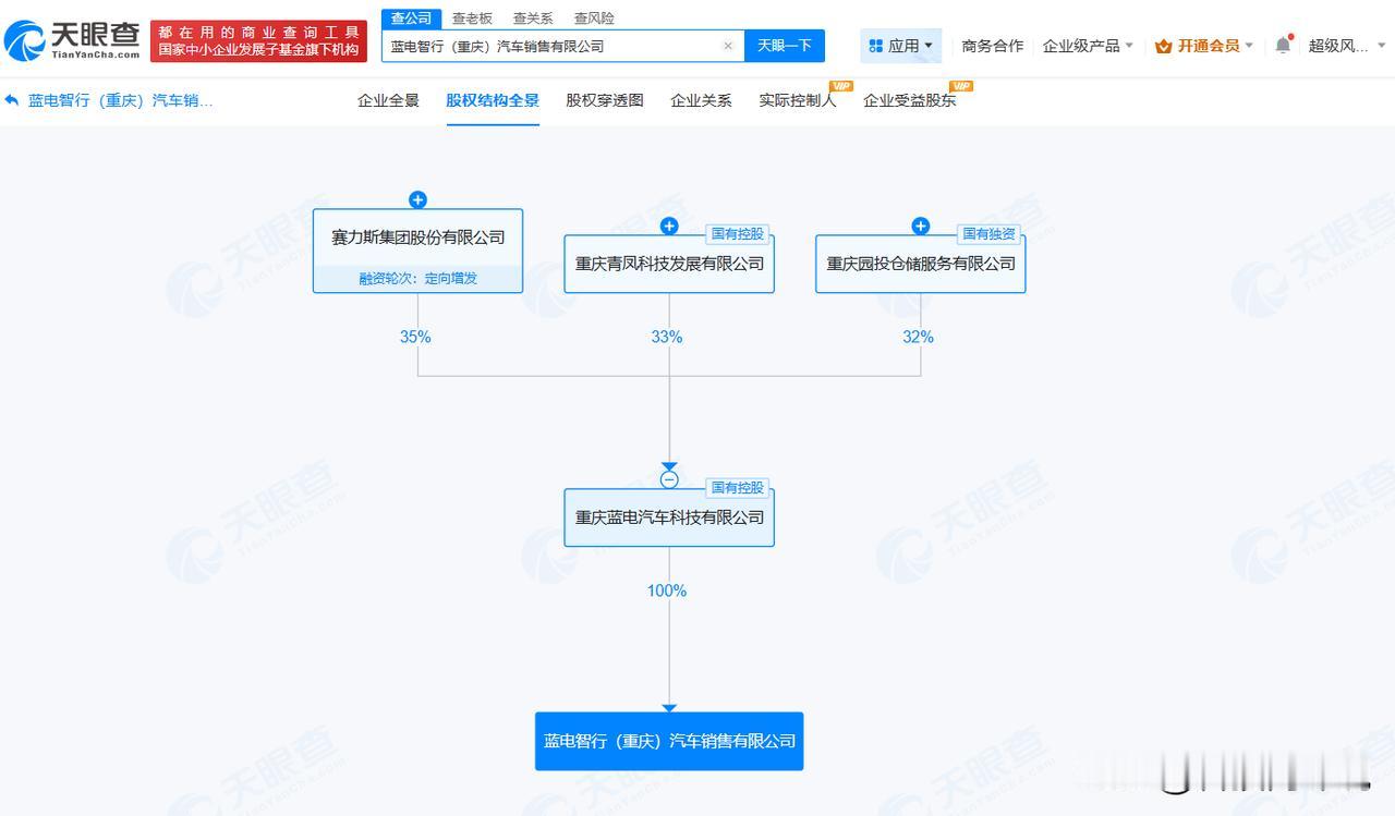 【赛力斯旗下蓝电汽车成立汽车销售公司 注册资本5000万】 天眼查工商信息显示,近日,蓝电智行(重庆)汽车销售有限公司成立,法定代表人为张正源,注册资本5000万人民币,经营范围包括汽车销售、新能源汽车整车销售、新能源汽车电附件销售等。股权全景穿透图显示,该公司由重庆蓝电汽车科技有限公司全资持股,后者由赛力斯(601127)等共同持股。 天眼查信息: