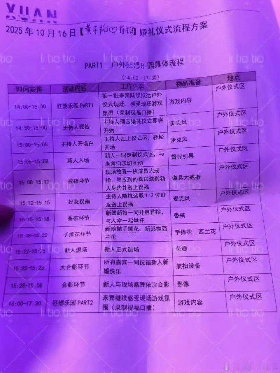 黄子韬婚礼流程出来了,感觉tao是不是回春了?