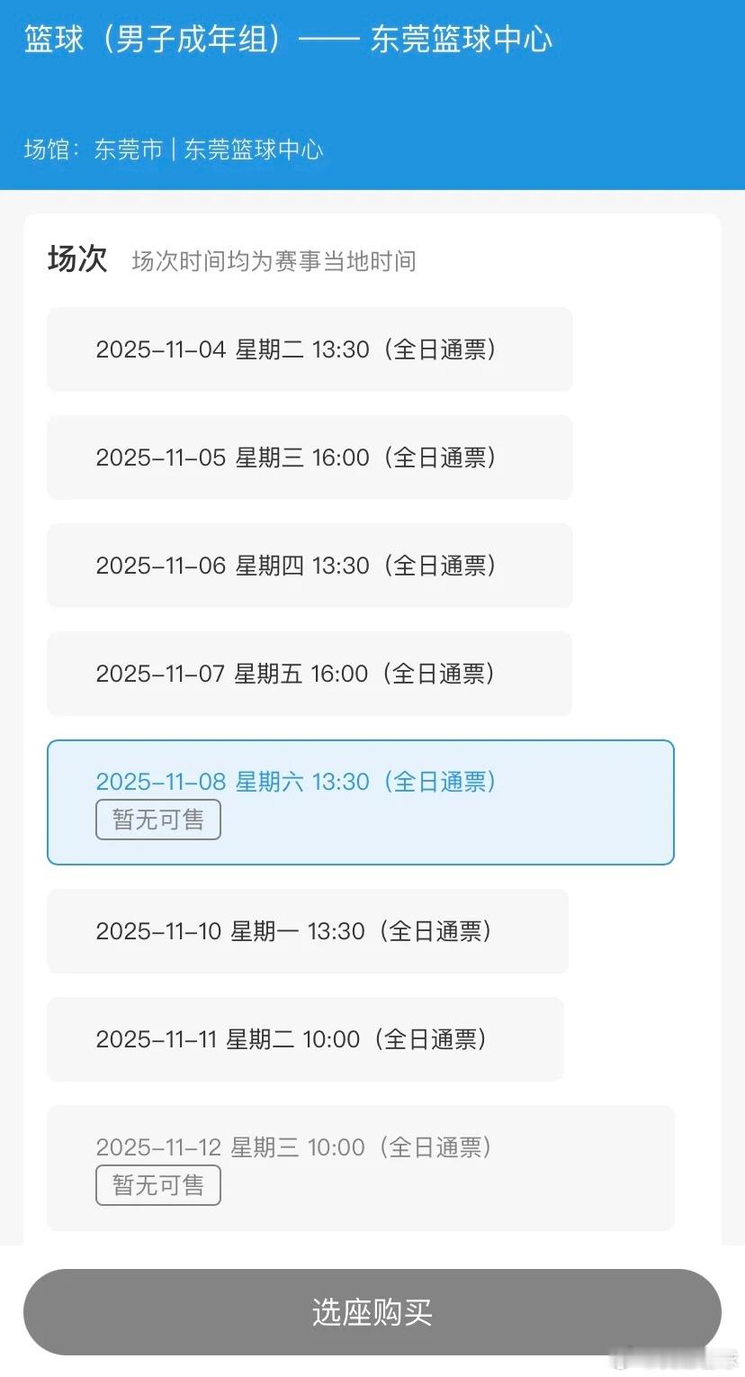 看了下目前8号小组赛和决赛那天的票已经被抢完,还有记得要看清楚场馆哦,广东队小组赛所有比赛以及决赛都是在东莞篮球中心进行