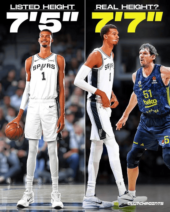 虎扑10月16日讯今日,美媒ClutchPoints更新动态,谈到了马刺球员文班亚马的身高: