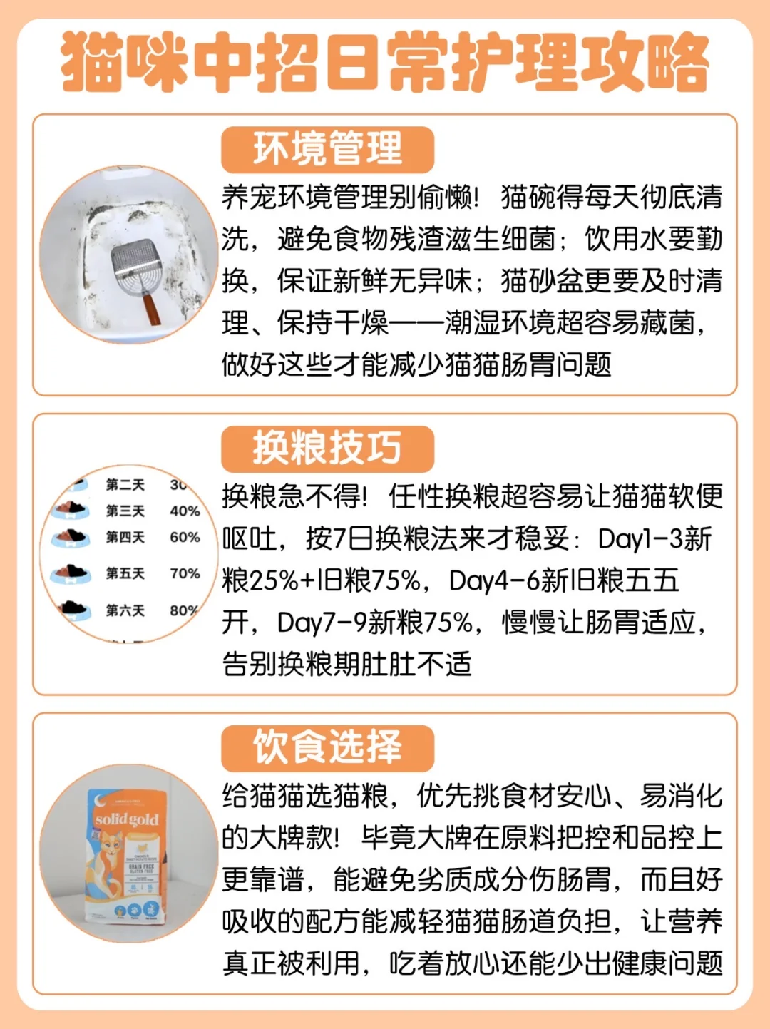 刷到好多铲屎官吐槽自家猫猫的肠胃困扰,这几种品种猫更是日常中招~ 就好像我家的金渐层,也是只玻璃胃,经常上吐下泻得折腾我 ��布偶猫:玻璃胃本胃!软便拉稀是常态,总粘着粑粑,经常追着擦屁股 ��英短美短:不容易长肉!明明吃得多但便便又多又臭,消化不好导致营养吸收差 ��缅因猫:毛发干枯像稻草!肠胃弱导致营养流失,连爆毛都成问题 ��暹罗猫:呕吐专业户!吃快了吐,换粮了吐,有时候还莫名其妙吐黄水 我家金渐层刚接回家时就是软便怪,每次拉完粑粑都要追着用湿巾擦三遍pp,但做好这几点后~小家伙越养越棒! 1️⃣ 环境管理:猫碗每天清洗,水要勤换,猫砂盆保持干燥(潮湿环境容易滋生细菌) 2️⃣ 换粮技巧:要遵循7日换粮法~任性换粮肚肚Hold不住 Day1-3 25%新粮+75%旧粮,Day4-6 五五开,Day7-9 75%新粮,这样肚肚接受就好啦 3️⃣ 饮食选择:入手食材安心好吸收的大牌猫粮 我家猫猫就是换了素力高鲜肉高蛋白猫粮才改善了拉肚肚的困扰~现在来扒一扒它到底有什么关键养胃点? 这款猫粮拥有的专研肠道食谱超牛~专利益生菌守护肚肚活力肠道平衡+深海鱼油滋养修复肠道+天然膳食纤维促进肚肚蠕动排便,三管齐下让猫猫肠道稳稳的,从此告别软便拉稀!而且中农大 的系统性喂养跟踪也证明了,吃这款粮猫咪腹泻率能↘呢,肠道菌群数量还能↗,守护肠胃效果敲显著! 它家食材可是采用的100%进口鲜肉肉源特别放心,42%新鲜鸡肉入料,47% 的高易消化蛋白,85%源自优质动物蛋白,对猫猫来说敲好吸收消化滴,不会给肠胃增加负担哟! 我家金渐层现在每天都嘎嘎炫饭,肠胃好了,食欲也变好了,吃得多还吸收得好,体重慢慢涨了不少。家里的猪咪肉肉也结实,毛发也顺滑,铲屎官都会很幸福吧反正我是敲满意~这猫粮营养特别全面,猫猫当然长得好啦~ 如果你家猫猫也是品种猫,欢迎对号入座,自查自家是否有这些肠胃问题~真心建议可以试试素力高鲜肉高蛋白猫粮~呵护毛孩子健健康康长肉肉,铲屎官的心里真的敲满足~ 话题:素力高素力高猫粮素力高鲜肉高蛋白猫粮猫粮推荐猫咪科普品种猫科普新手养猫猫咪好物新手养猫推荐