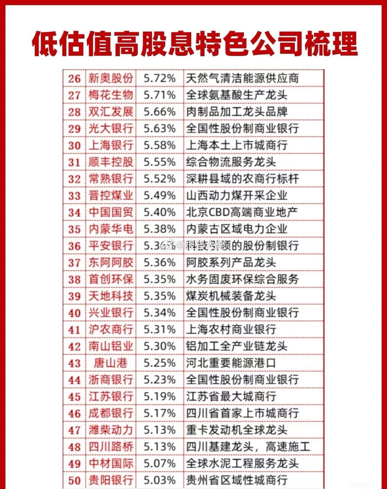 低估值高股息特色公司梳理