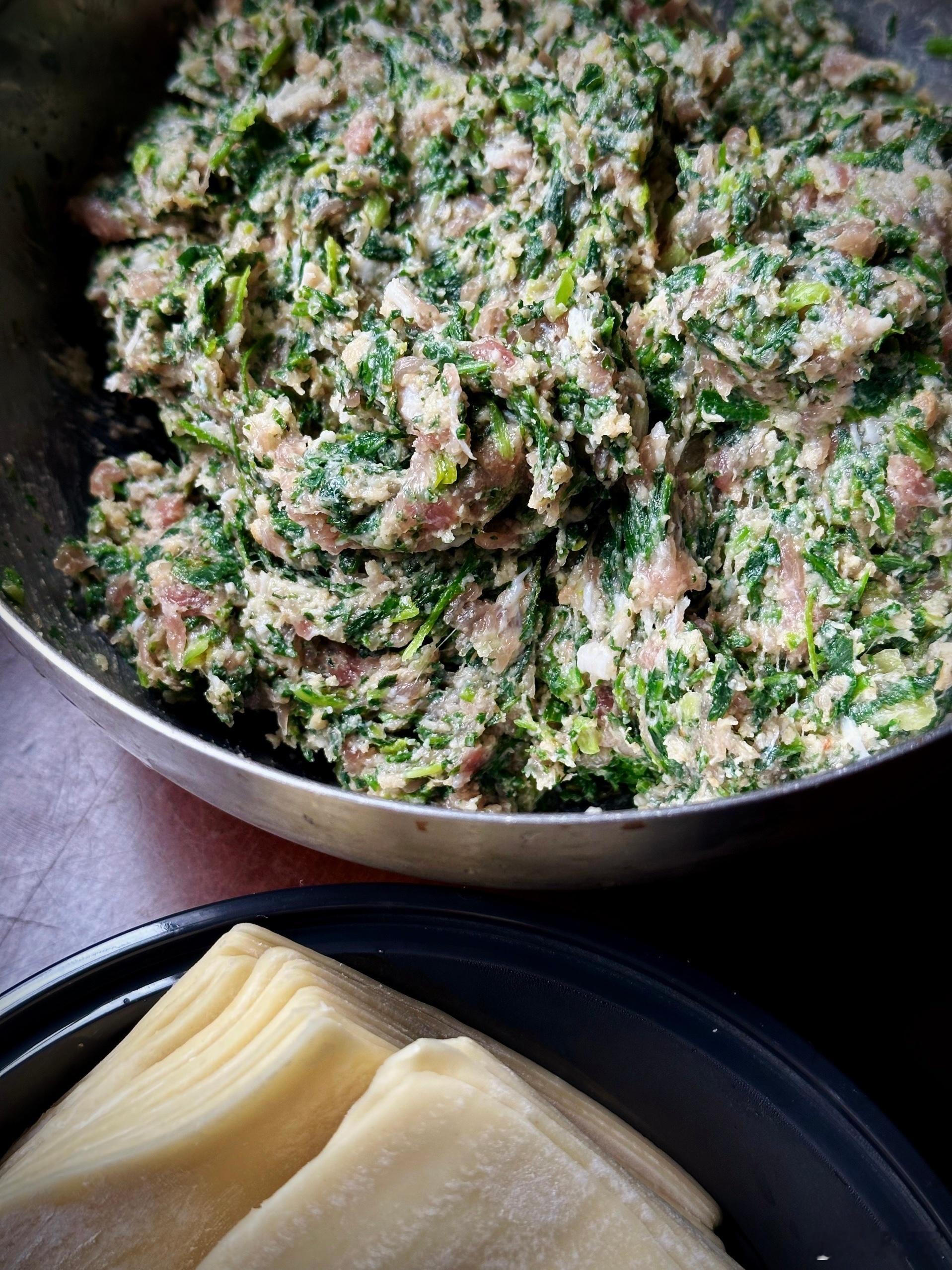 出差好几天回转来,喫得落胃最要紧。就准备点荠菜肉馄饨吧。荠菜肉馄饨葱花猪油清汤就