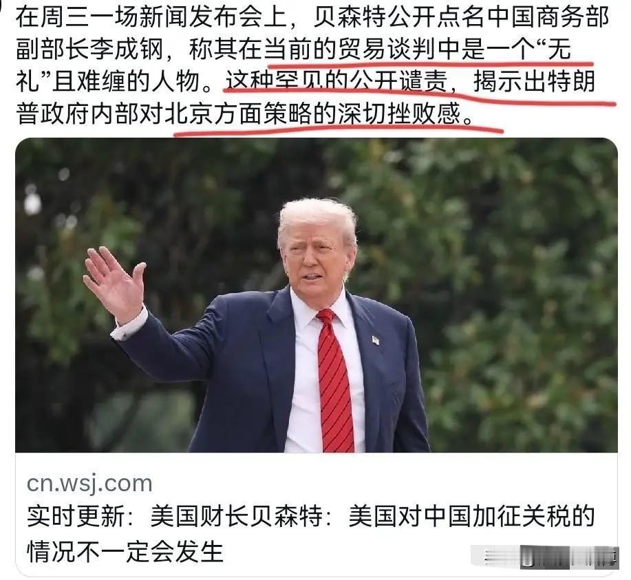 现在很好奇,我们的贸易谈判代表到底对美国说了什么,以至于美国财长贝森特专门开一个