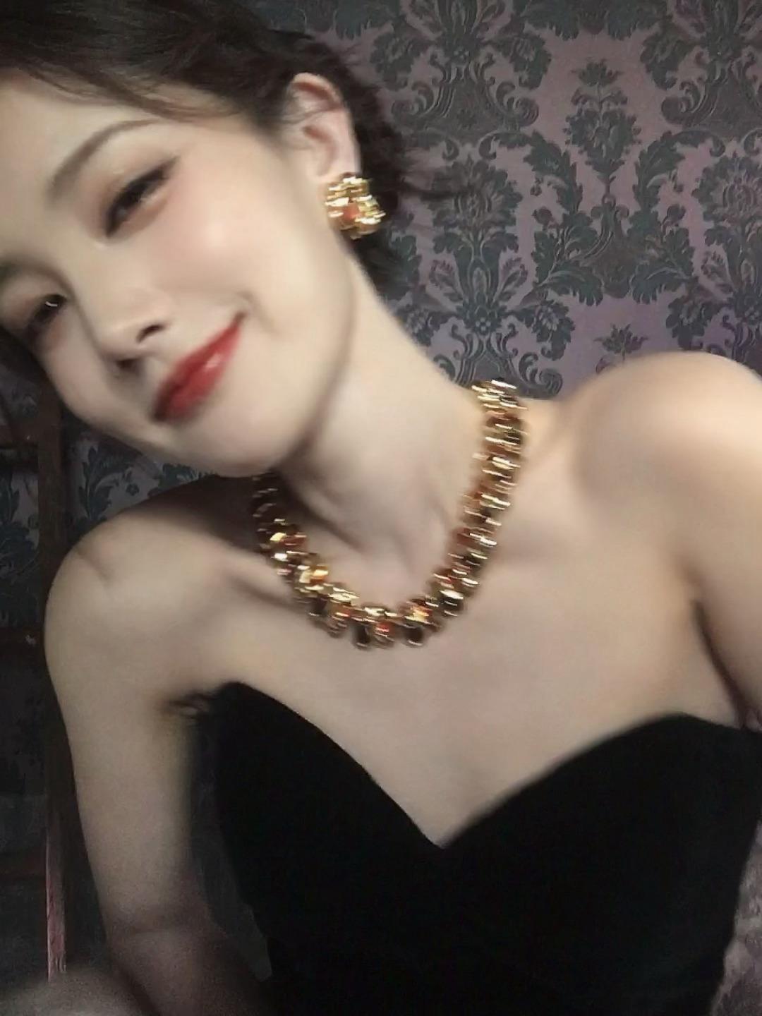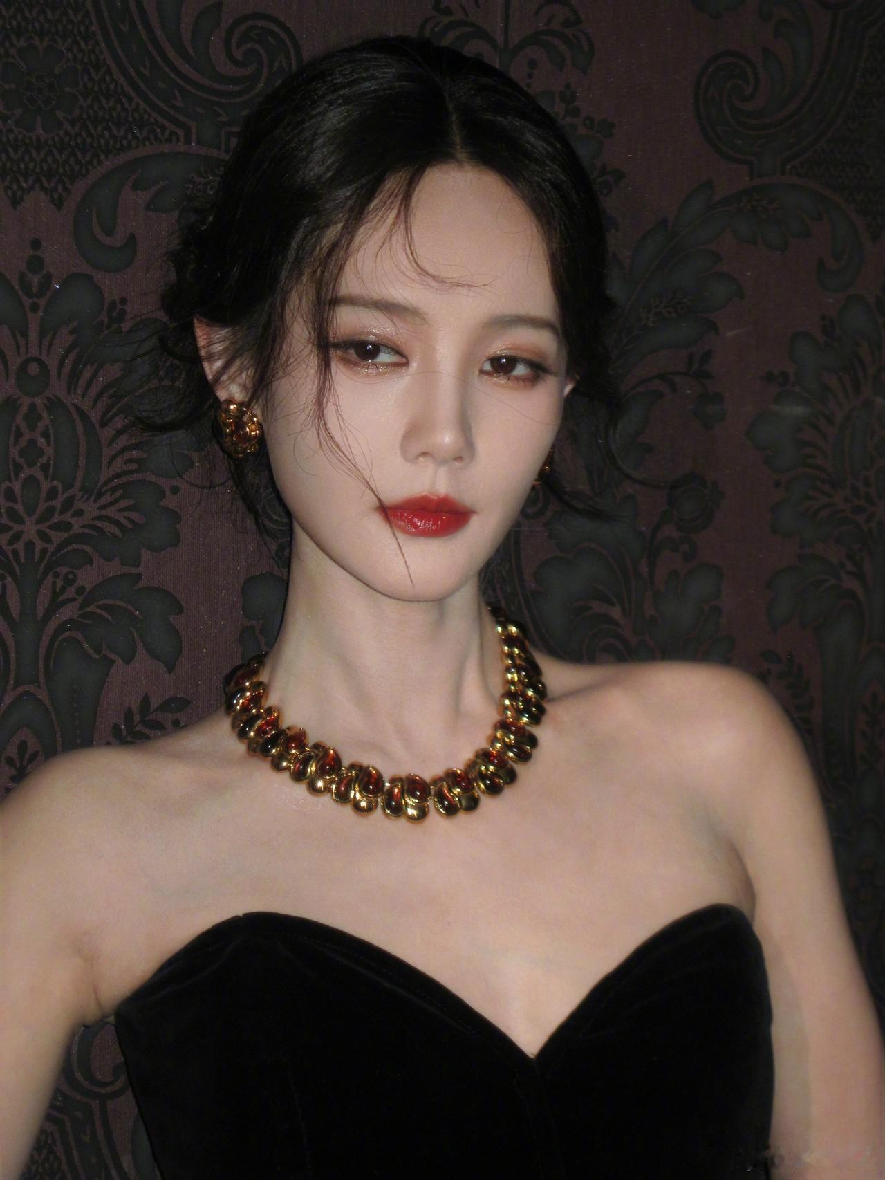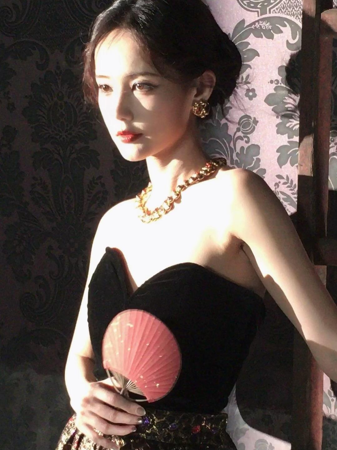 李一桐,当之无愧的女神啊! 这妆造好符合她的气质了,抹胸黑裙搭配大金项链,举手投足间的优雅,太迷人了