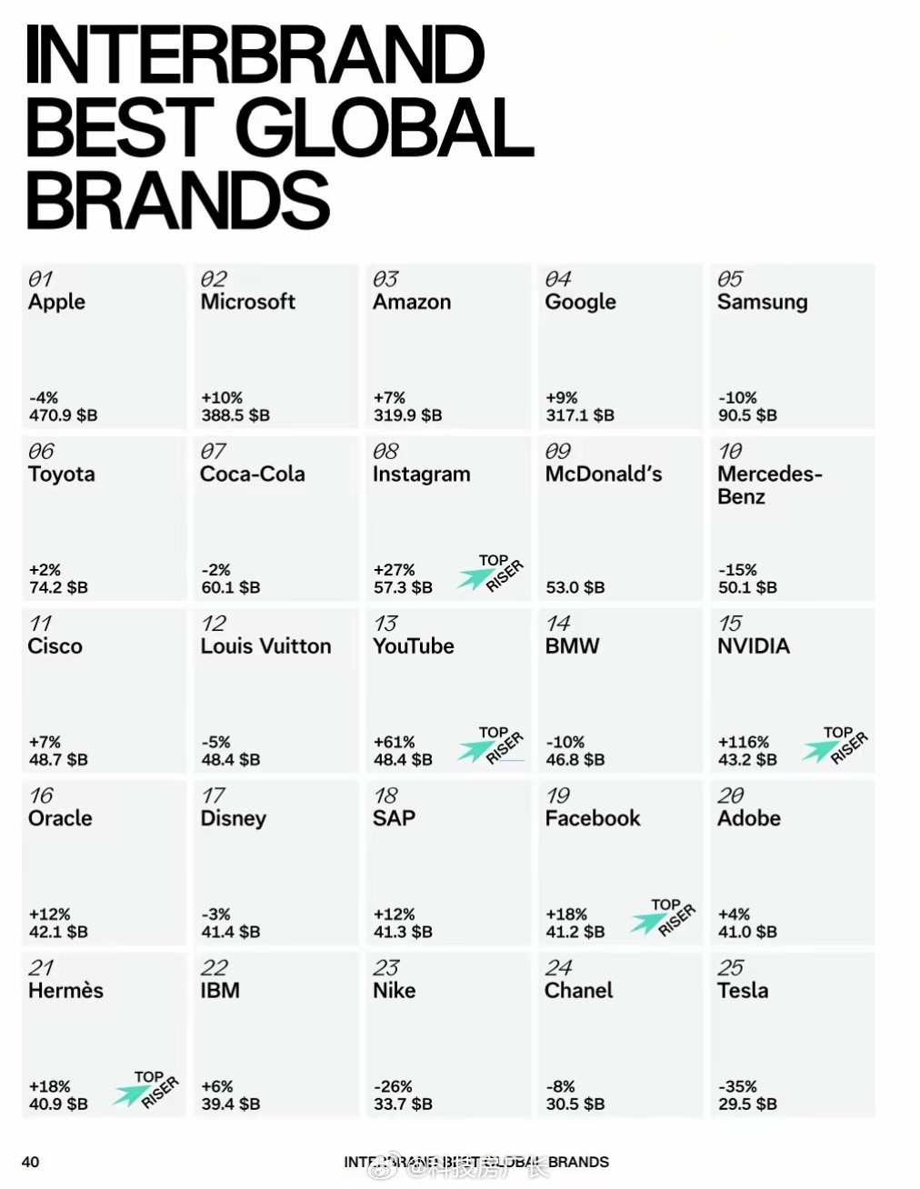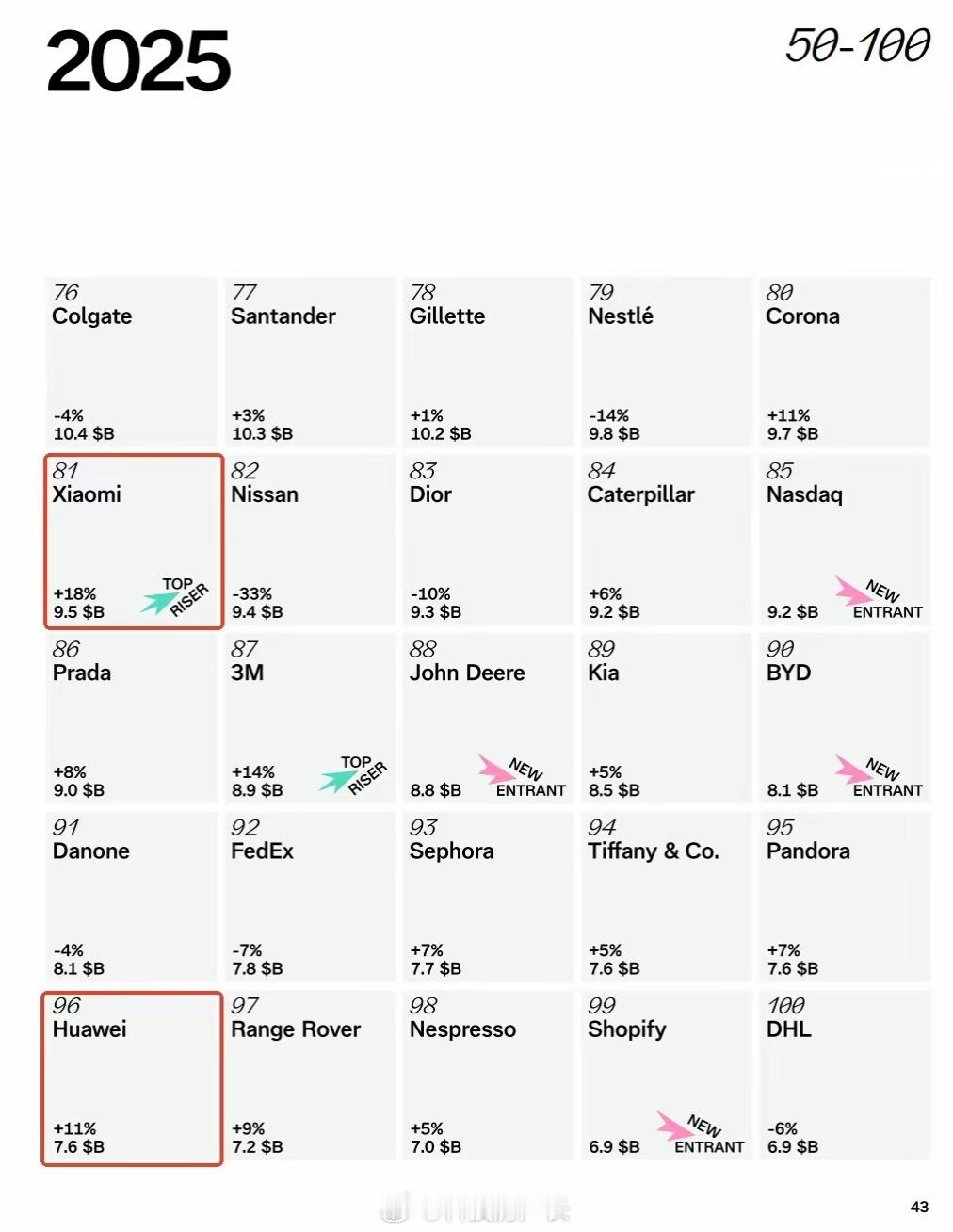 2025全球最佳品牌榜,苹果第一、小米第81、华为第96