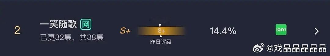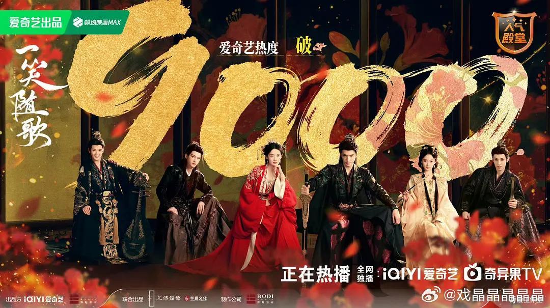 恭喜一笑随歌热度破9000,目前为爱奇艺2025开播剧集热度排名第八。