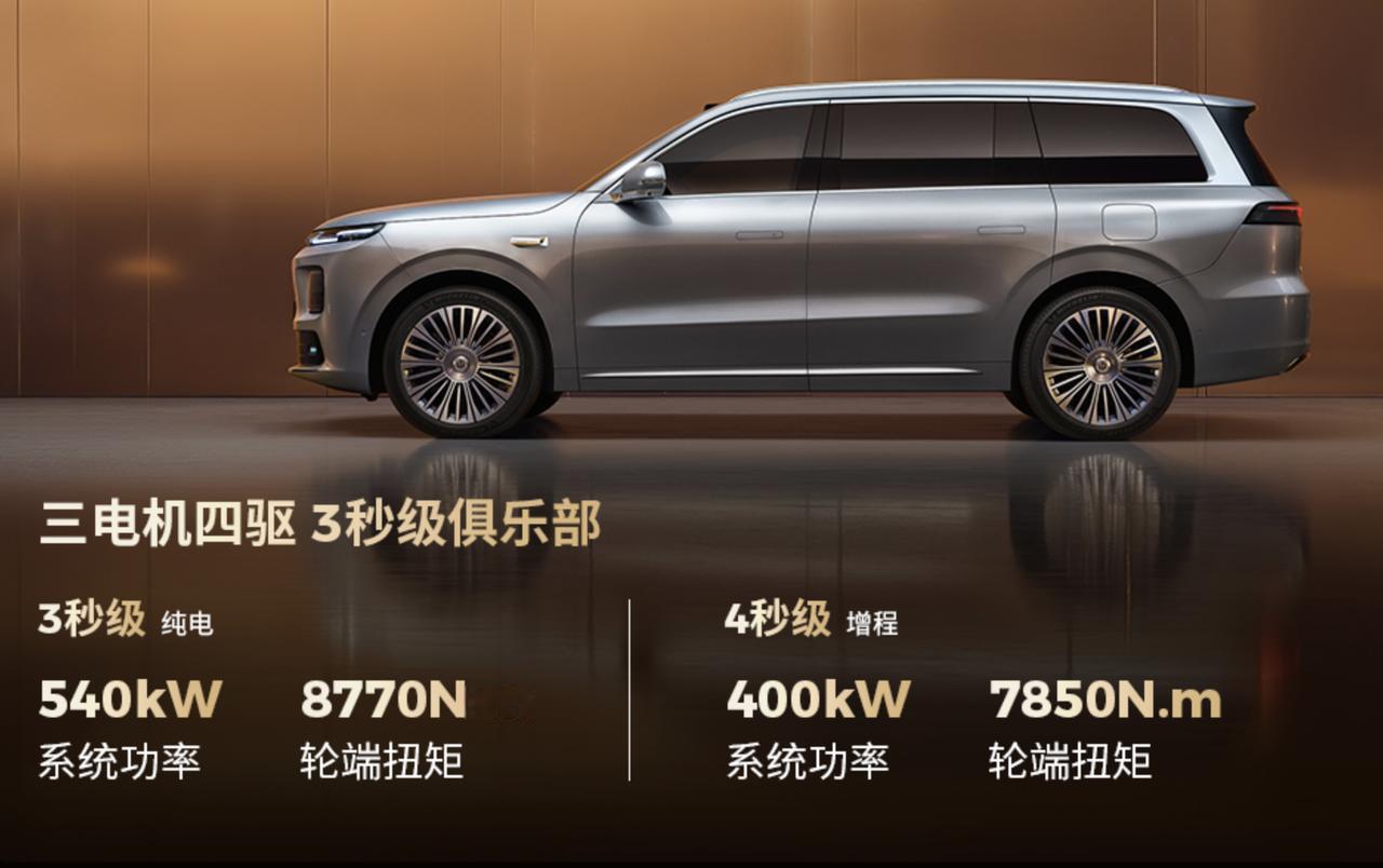 增程版采用800伏CTC增程技术及智能增程四驱,系统综合功率400千瓦,匹配80.3千瓦时宁德时代电池,纯电续航里程超过500公里,零百加速4秒级。 纯电版车型搭载全栈千伏三电系统,搭载115千瓦时宁德时代最新混合电芯,续航720km。