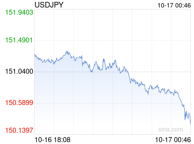新浪外汇消息2025年10月17日,截至00时46分,外汇市场上美元兑日元汇率跌破1美元兑换150.2800日元。跌幅为-0.5032%