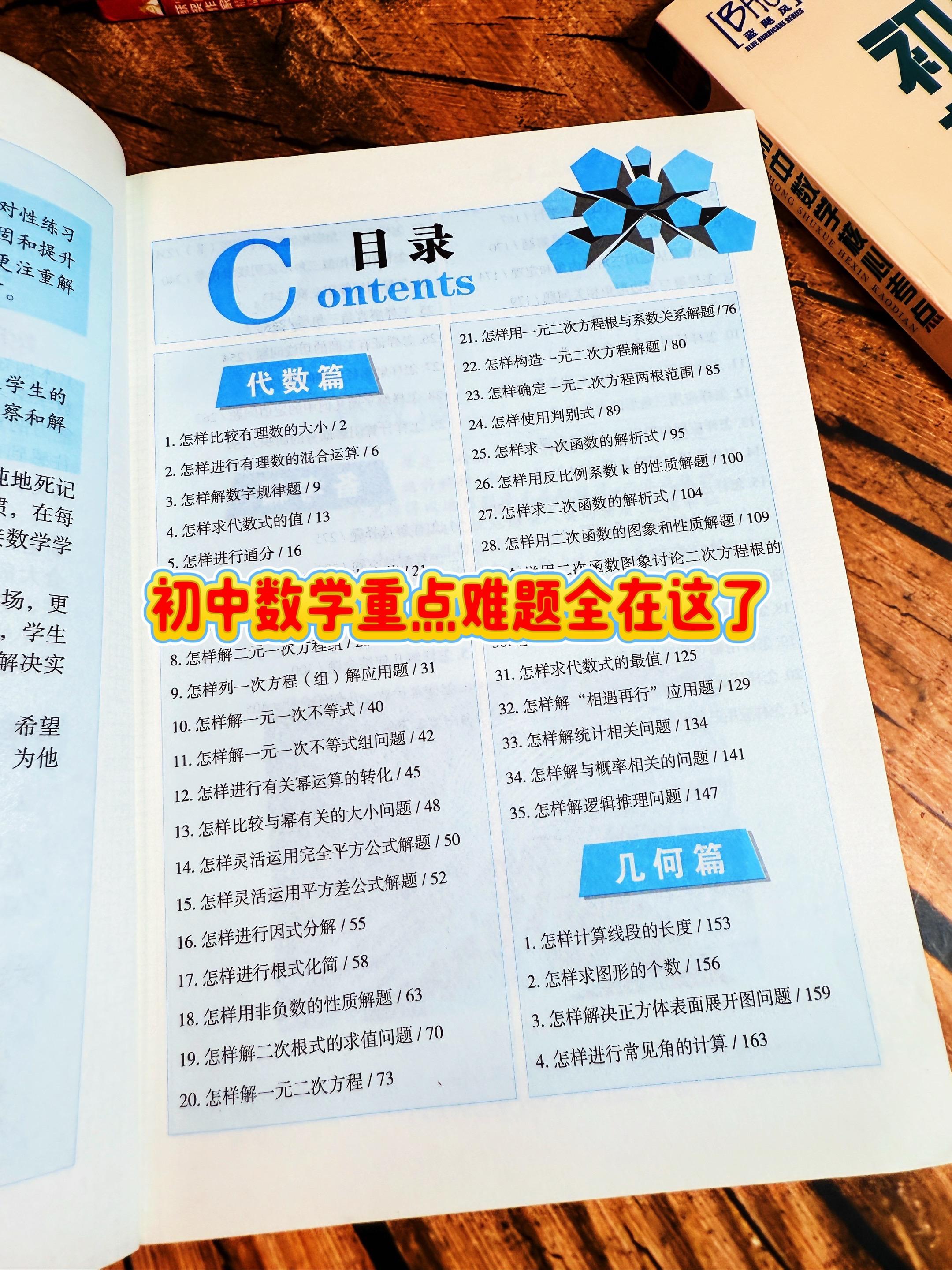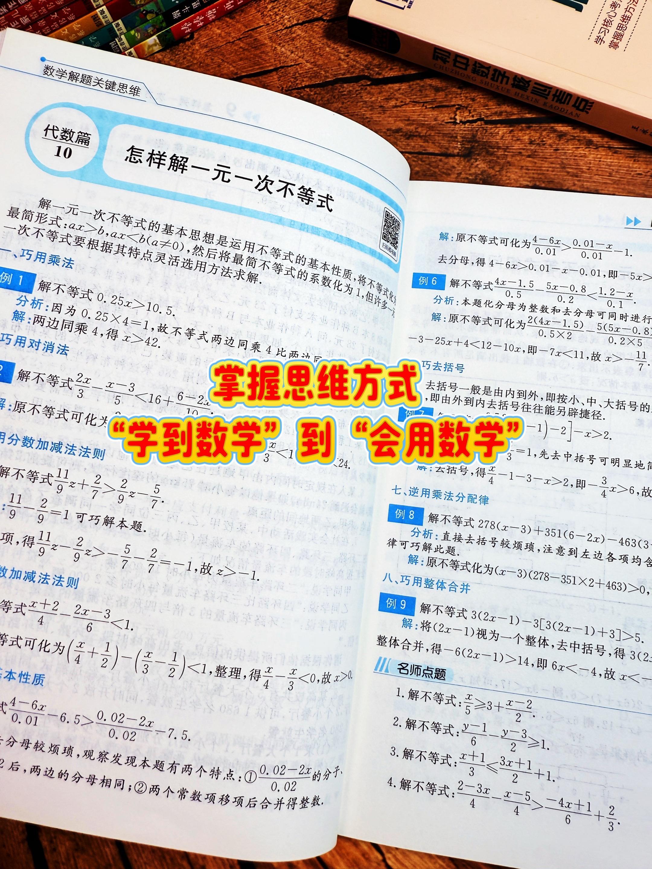 初中数学解题关键思维,学会数学到会用数学。初中数学 不管怎么变,也就这64种解题方法,掌握了做题就会又快又准,这本初中数学解题关键思维 都给你梳理好了,比如解二元一次方程的6种方法,二次函数解析式的3种方法以及三角形几何证明的7种方法等,非常全面!