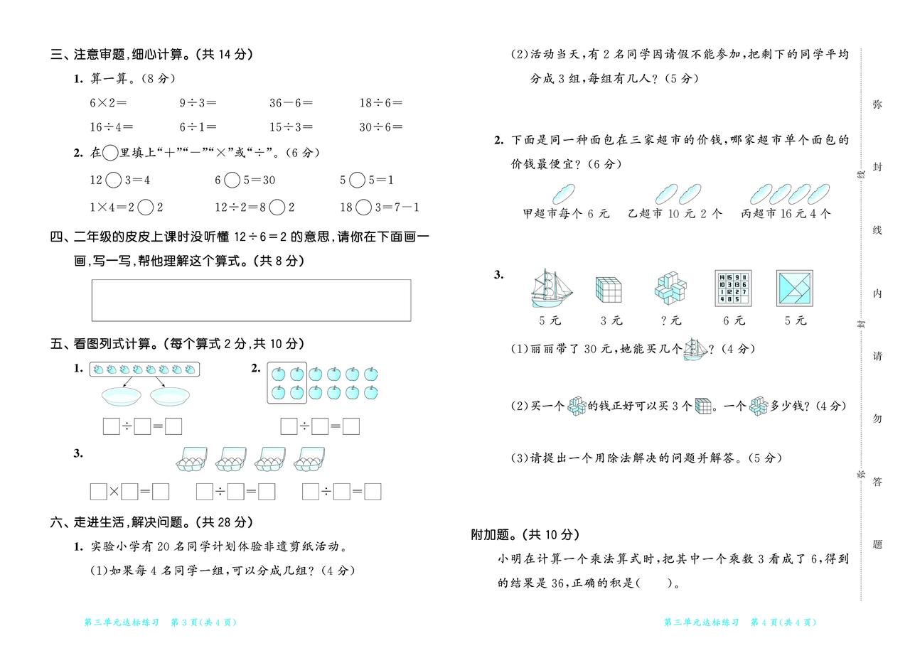 2025秋最新人教版数学二年级上册第三单元达标练习