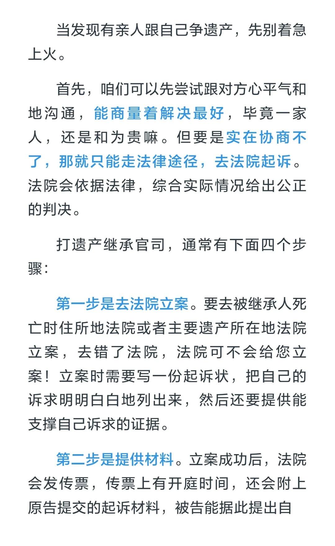 遇到亲人和您争遗产,应该怎么应对? 当亲人争遗产,先沟通,协商;协商不成,走法律