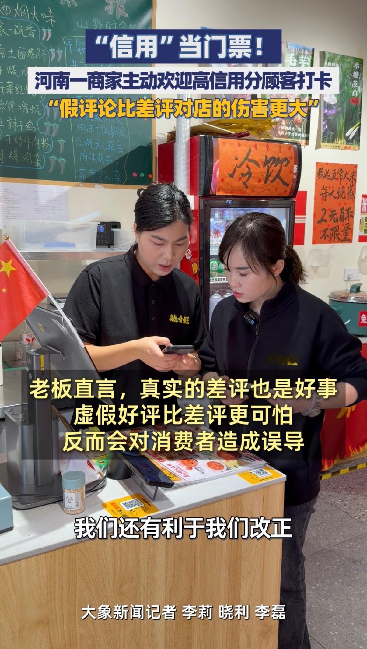 希望这个老板带了个好头,让更多商家都学学,别老想着刷好评了,没意思。河南餐馆老板拉横幅欢迎高信用分顾客