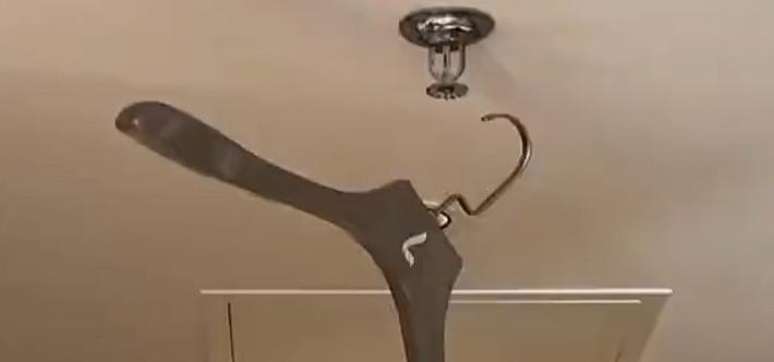 最近有个事儿真是让人惊掉下巴,一客人在酒店客房的消防喷淋头上挂衣服,喷头玻璃球扯