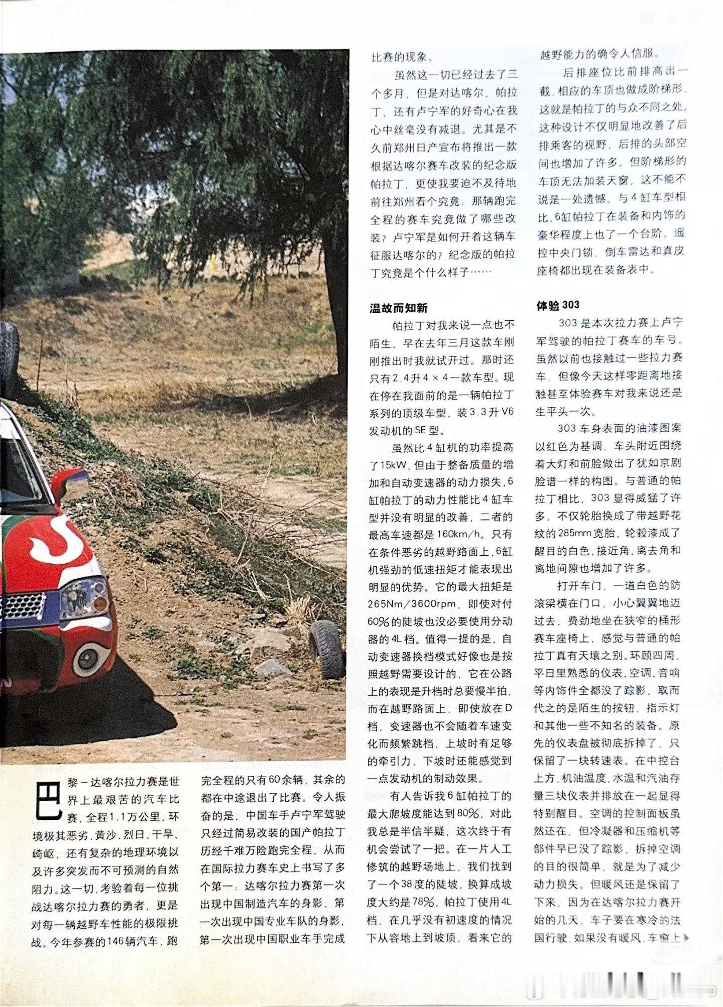 这是第一台参加达喀尔拉力赛的国产赛车,由时还年轻的“中国车王”卢宁军驾驶,总体改装费用仅三十万,却能以57名成绩完赛,鲜艳又极具特色的脸谱拉花,震撼了每一个stage的观众。
