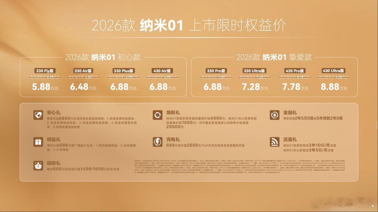 2026款纳米01经280余项升级,新增“精灵绿”车色,分8款车型。