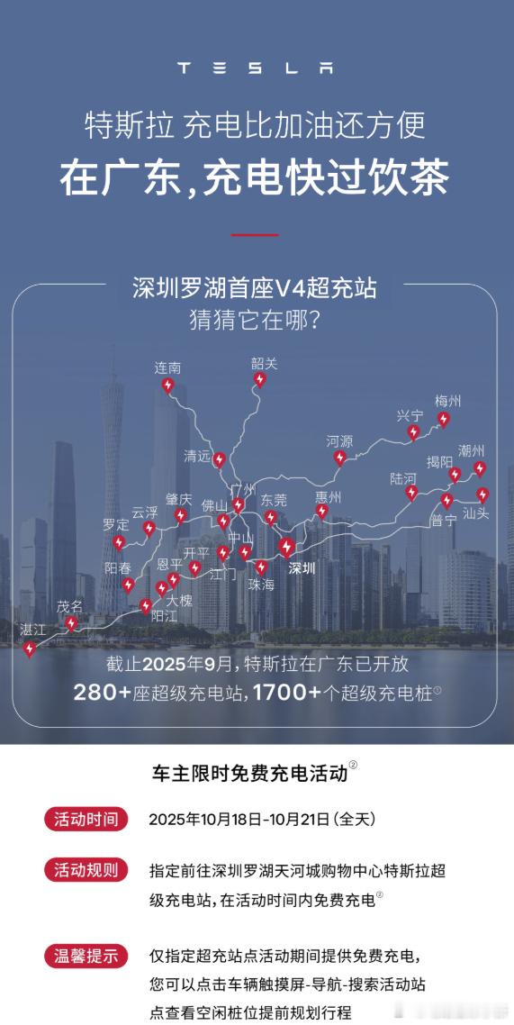 特斯拉请车主们免费充电 4 天,10 月 18 日- 21 日,在深圳的车主们可以去体验一下[老师夸夸]