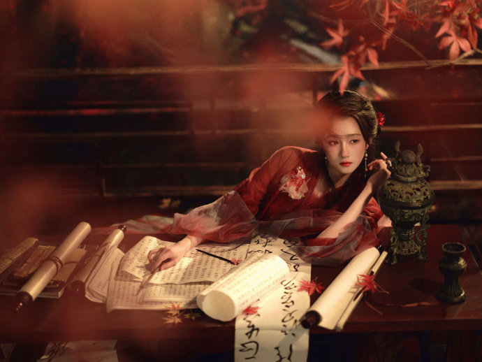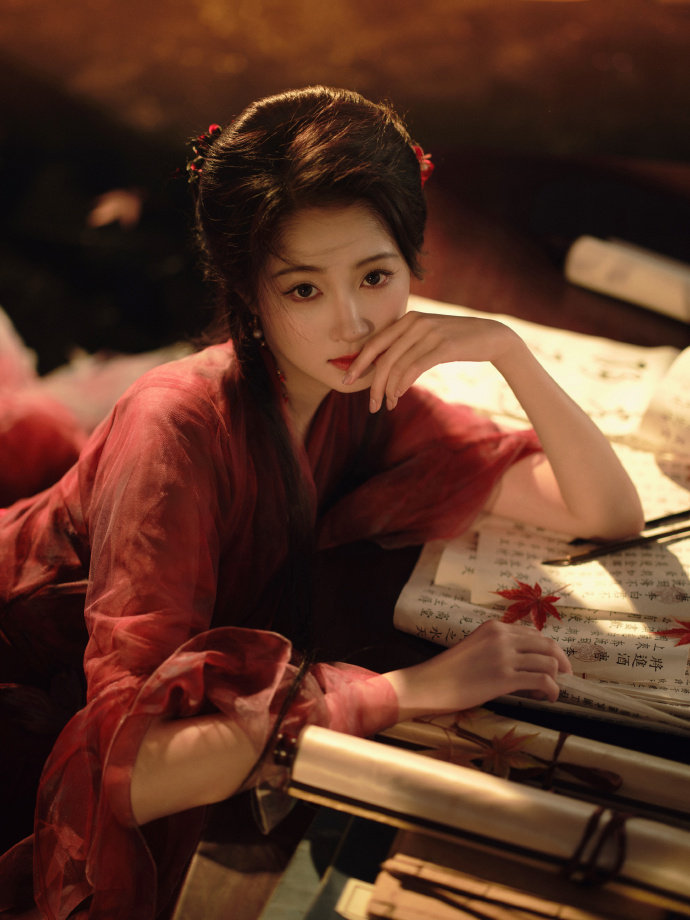 关晓彤红枫红裙少女大片,关晓彤红衣少女提灯,咱就说扑面而来的江湖气啊,谁能不被这个晓彤美到呢~