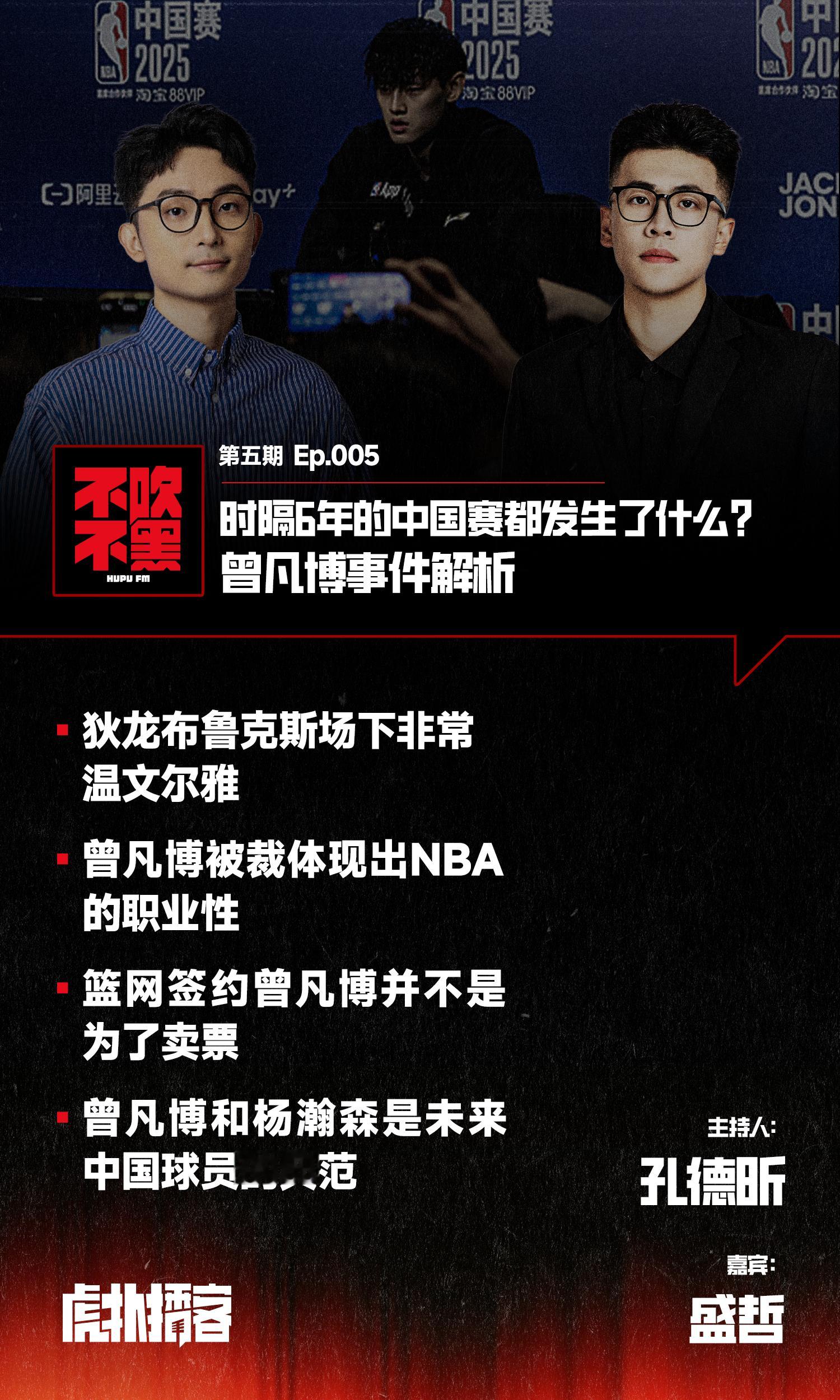 又一期《不吹不黑》播客在虎扑上线,和中国赛期间天天见的一起聊聊那几天的感受,以及曾凡博短暂签约篮网的前前后后!