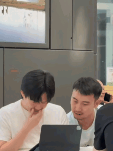 在香港转机时,当时他俩吃完饭,悠哉悠哉地一起看着手机,还一边看一边闲聊,轻松自在,玩的不亦乐乎[大笑]