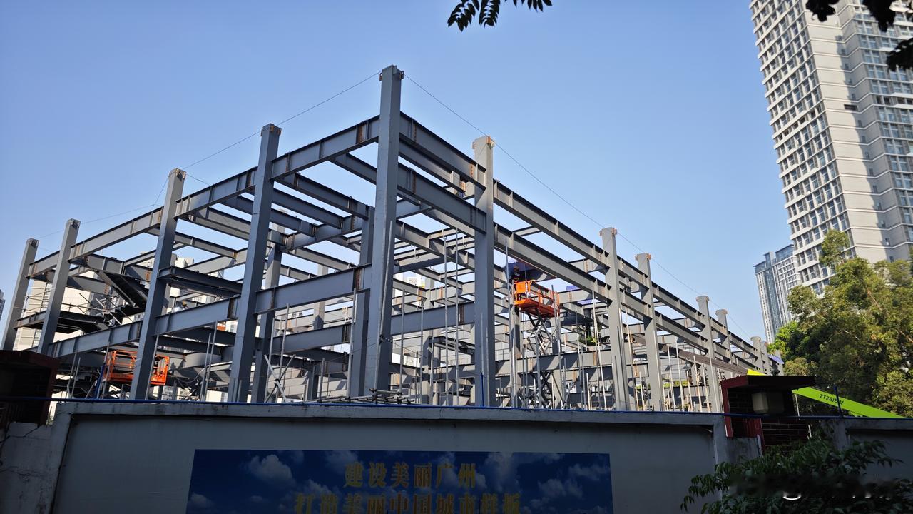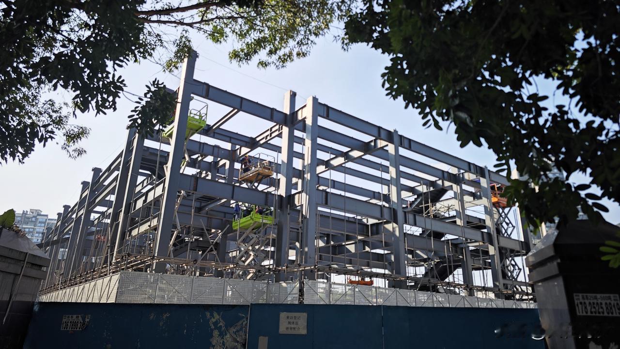 金洲板头大项目在敲敲打打好几年之后,终于显露真容了,一个钢结构的大型建筑,真的没