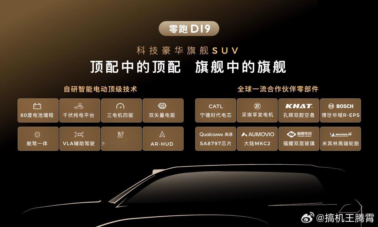 看了下零跑D19,确实很强啊。特别是增程版,80.3度大电池 + 40L油箱,纯电就能干到500km,感觉明年增程车都会采用这种解决方案,大电池配小油箱,我也觉得很合理,纯电版115度电池 + 3电机,720km续航。5.2米车长 + 3.1米轴距,双高通8797芯片,加上纯电3秒级的加速,似乎就差价格了,感觉如何[doge]