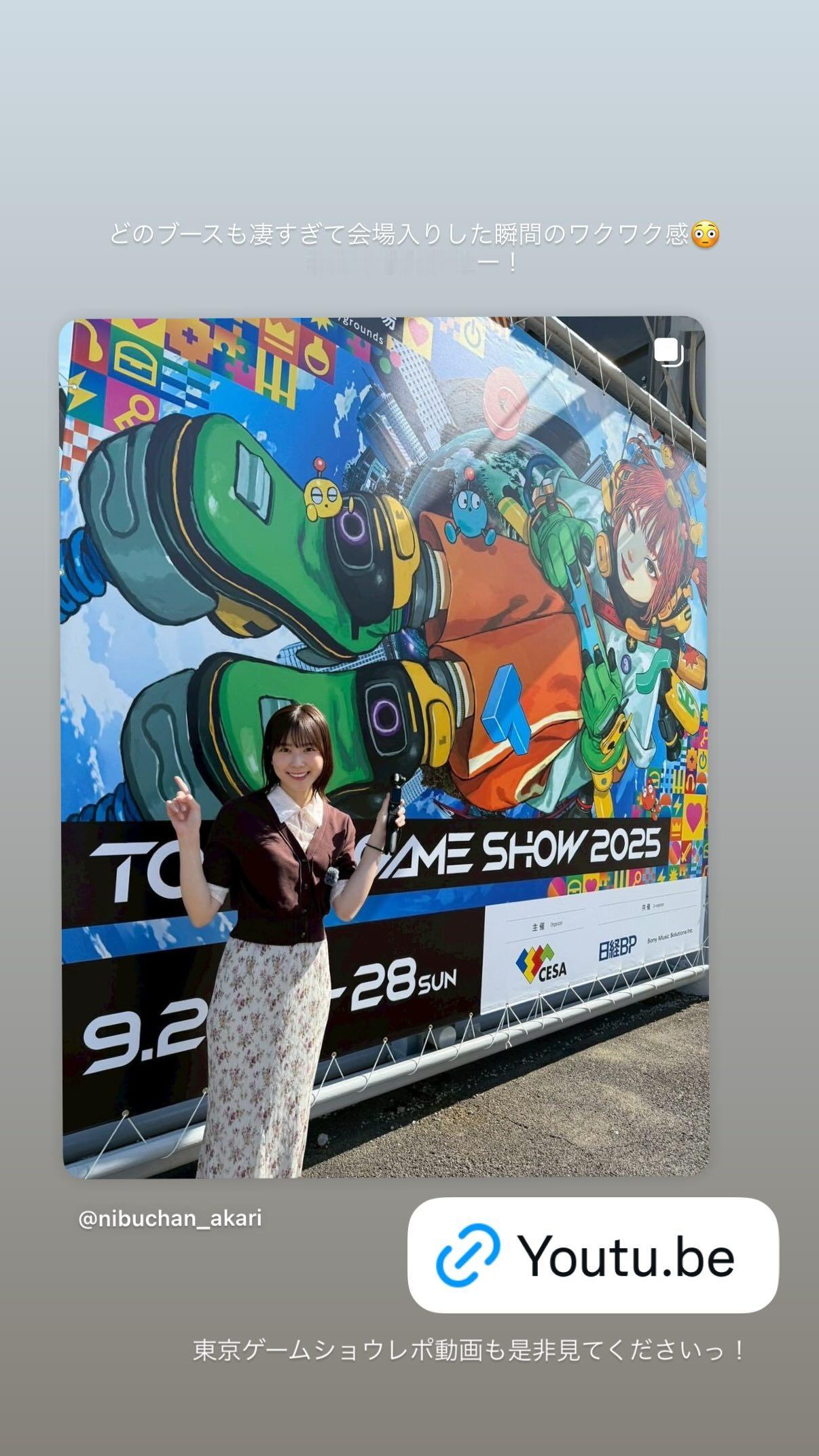 丹生明里🐸「🎮TOKYO GAME SHOW 2025、夢のような空間で本当に楽しかったー!😆来年も行くぞ〜!にぶちゃんねるにて動画も公開されておりますので是非見てください!tgs2025」