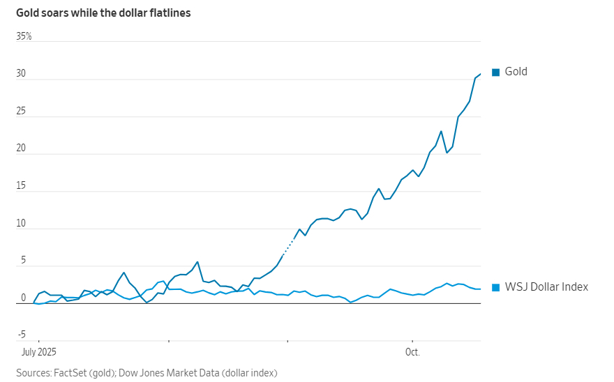 如果金价上涨至每盎司5790美元,央行持有的美元储备与黄金储备将大致持平。这一价格比当前的金价高出约三分之一。(WSJ)
