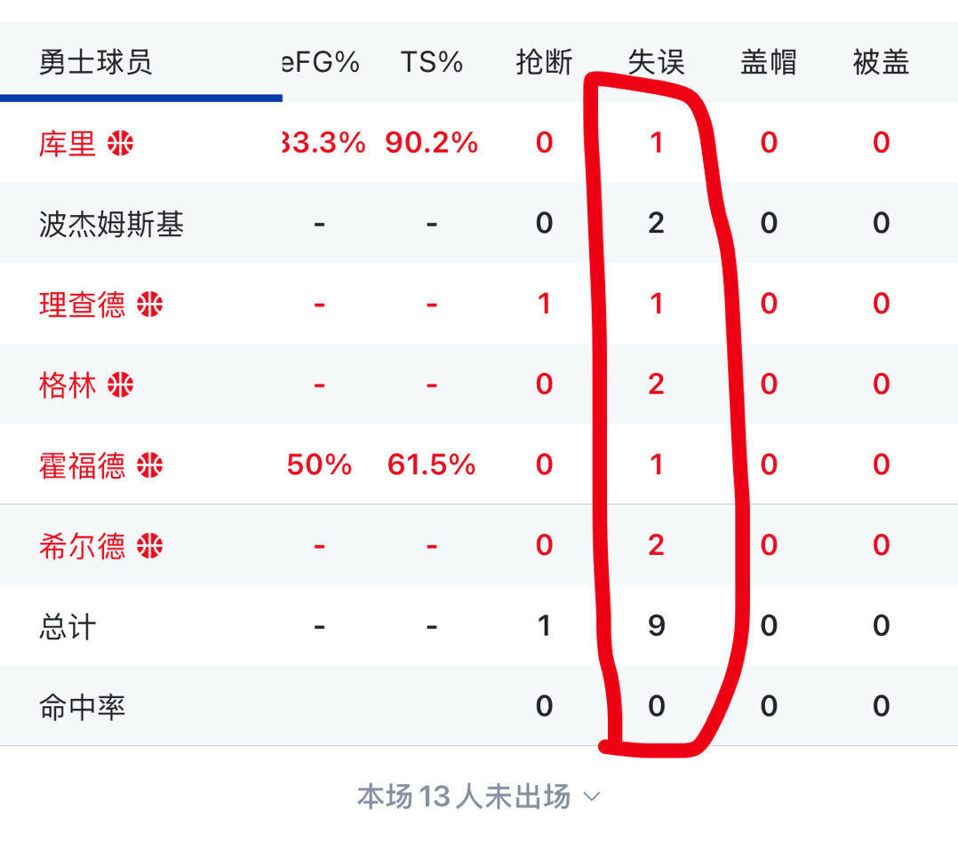 勇士6分钟9个失误了 [淡淡的] ​​​
