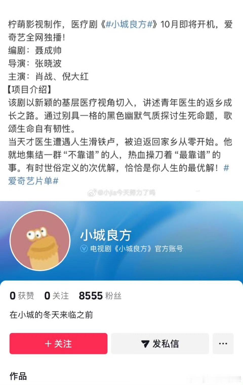 小城良方官宣阵容 伟大的扛剧生肖战的《小城良方》即将正式开机并官宣阵容,感觉又一爆款预订了[流鼻血]