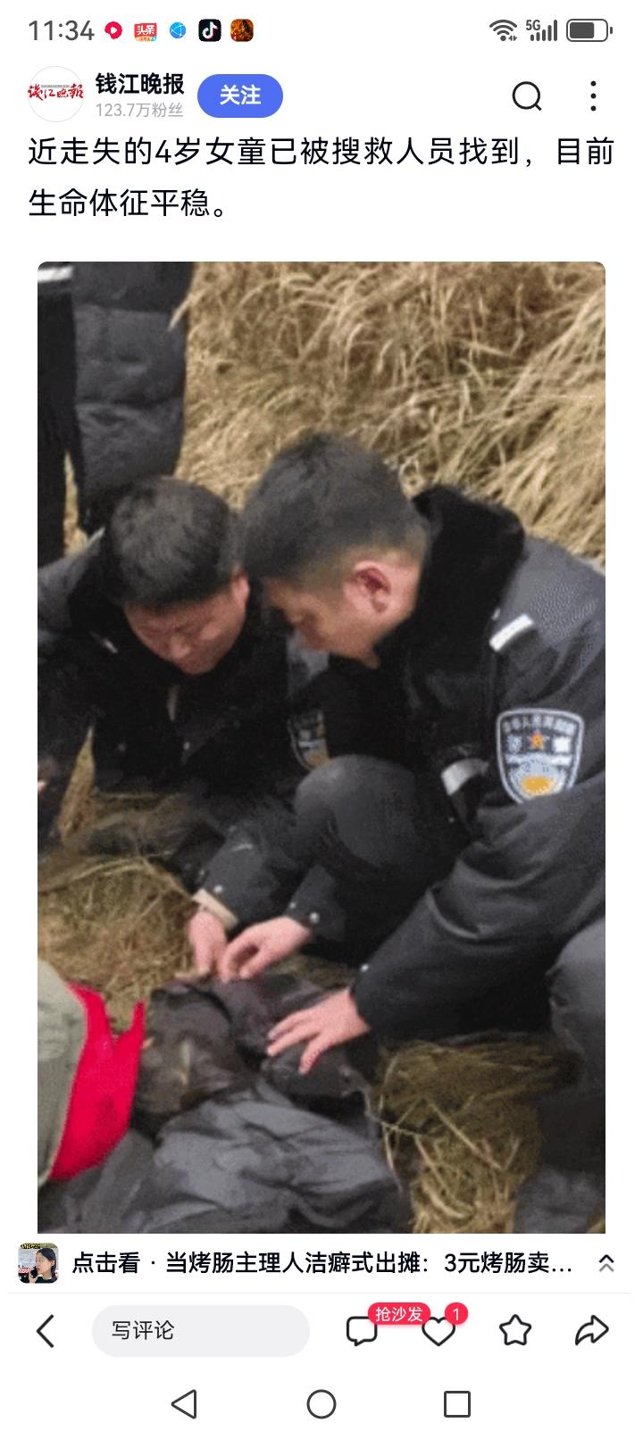 四岁女童走失被找到 关联12,000余人救助 辽宁省朝阳市建平县黑水镇二分地村,一名4岁小女孩走失。接到报警后,当地公安机关、消防、应急、医疗及民间救援队等力量展开全力搜救,最终于10月17日9时30分左右找到女童。 据官方公布的数字,此次救援活动共有12,000余人参与。其中既有官方专业救援队又有民间组织及志愿救援者。 “一方有难八方支援”这一光荣的民族传统,在本次救援活动中得到了最好的诠释。 有人在网上关注,家属是否会兑现之前的承诺10万元的奖励的问题。这个都不重要,重要的是小生命已被找回。 一个幼童牵动万人心这样的事情可能也只有在我们这样的国度里才能出现吧。 感恩大中华[祈祷]感恩华夏文化[比心][比心]