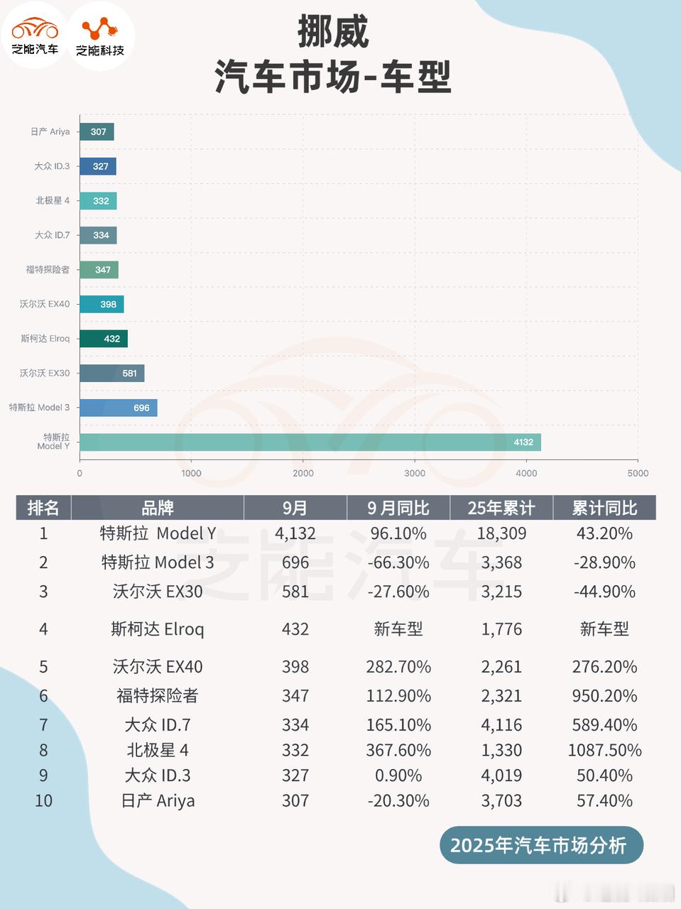 2025 年 9 月,挪威汽车销量达 1.4 万台左右,纯电动汽车占比高达 98.3%,创历史新高,市场几乎被纯电车型完全取代。