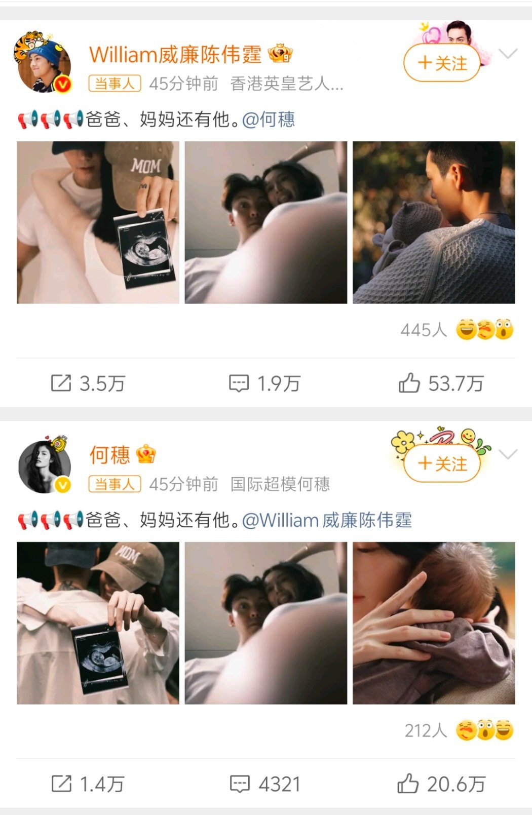 陈伟霆何穗官宣生子 晒的是娃,没晒结婚证啊?