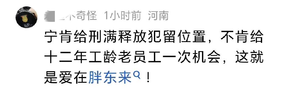 “宁肯给刑满释放犯留位置,不肯给十二年工龄老员工一次机会,这就是爱在胖东来!”