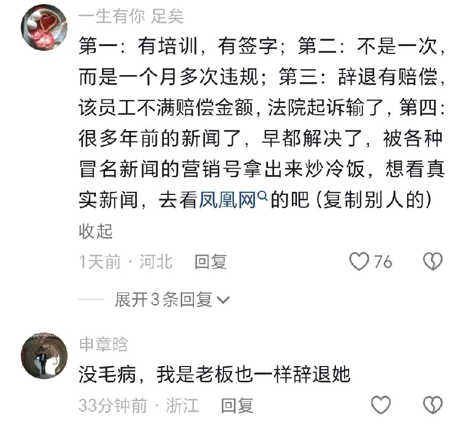 “宁肯给刑满释放犯留位置,不肯给十二年工龄老员工一次机会,这就是爱在胖东来!” 这样的说词在此次有关胖东来开除员工的事件中,评论区出现的频率是非常高的。 对这样的言辞,一眼就可以看出这是在混淆视听,故意模糊两者之间的概念。 刑满释放人员,因为触犯了我国的法律,为此付出了应有的代价。当这些人刑期已满回归社会后,也将享有和普通人同样的就业和生存权利,但因为偏见,这些人的就业环境并不好。而胖东来并没有嫌弃他们,只要他们尊重国家法律法规,认同并能严格遵守胖东来的企业文化和规章制度,并符合胖东来的用人条件,就可以通过招聘途径成为胖东来的员工。这反映出来的是胖东来的格局和包容。 作为一名长期在胖东来工作的员工,对胖东来的规章制度应该是心知肚明的,理应为新入职的员工起到表率作用,但却多次违反胖东来的规章制度,难道作为胖东来的员工,就只能享受高薪和高福利待遇,而不受其规章制度的约束和处罚吗? 国有国法,家有家规,企业更会有符合企业发展并对员工进行约束的规章制度。 违犯国家的法律,会受到法律的惩处;违反了企业的规章制度,同样也应该受到处理。 刻意将两种不同的处理结果对立起来,要么就是没有搞清楚二者的相似和不同,要么就是别有用心的道德绑架! 不被带节奏理智的网民还是挺多的。