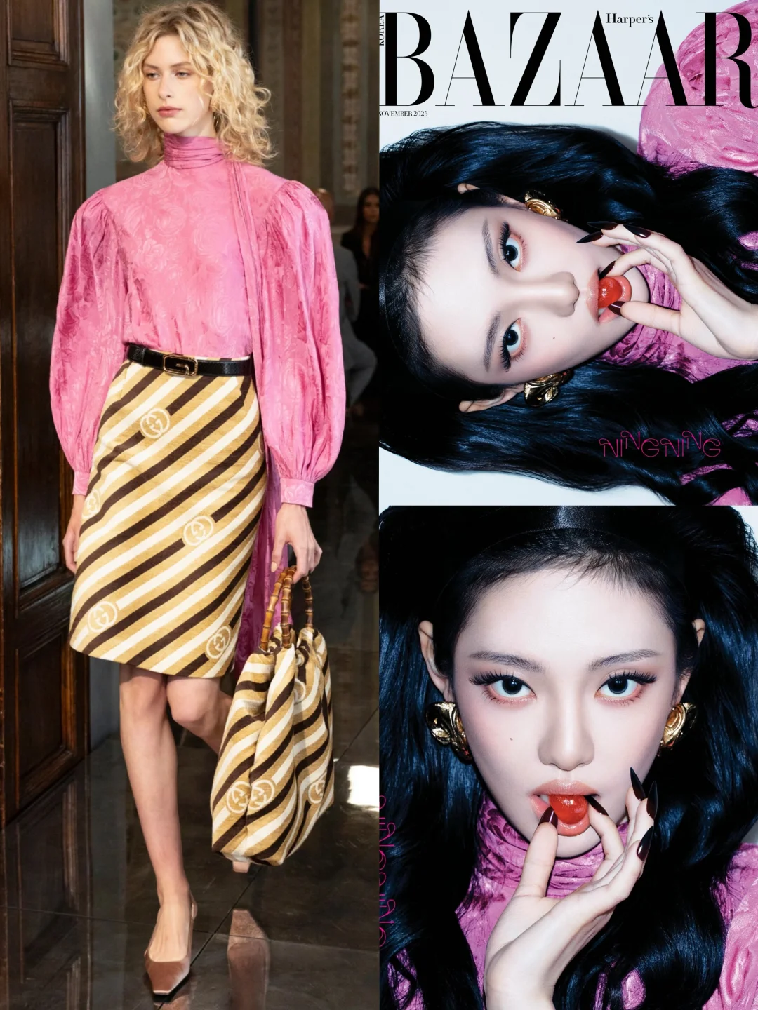 宁艺卓韩版芭莎封面Gucci的高规格待遇!
