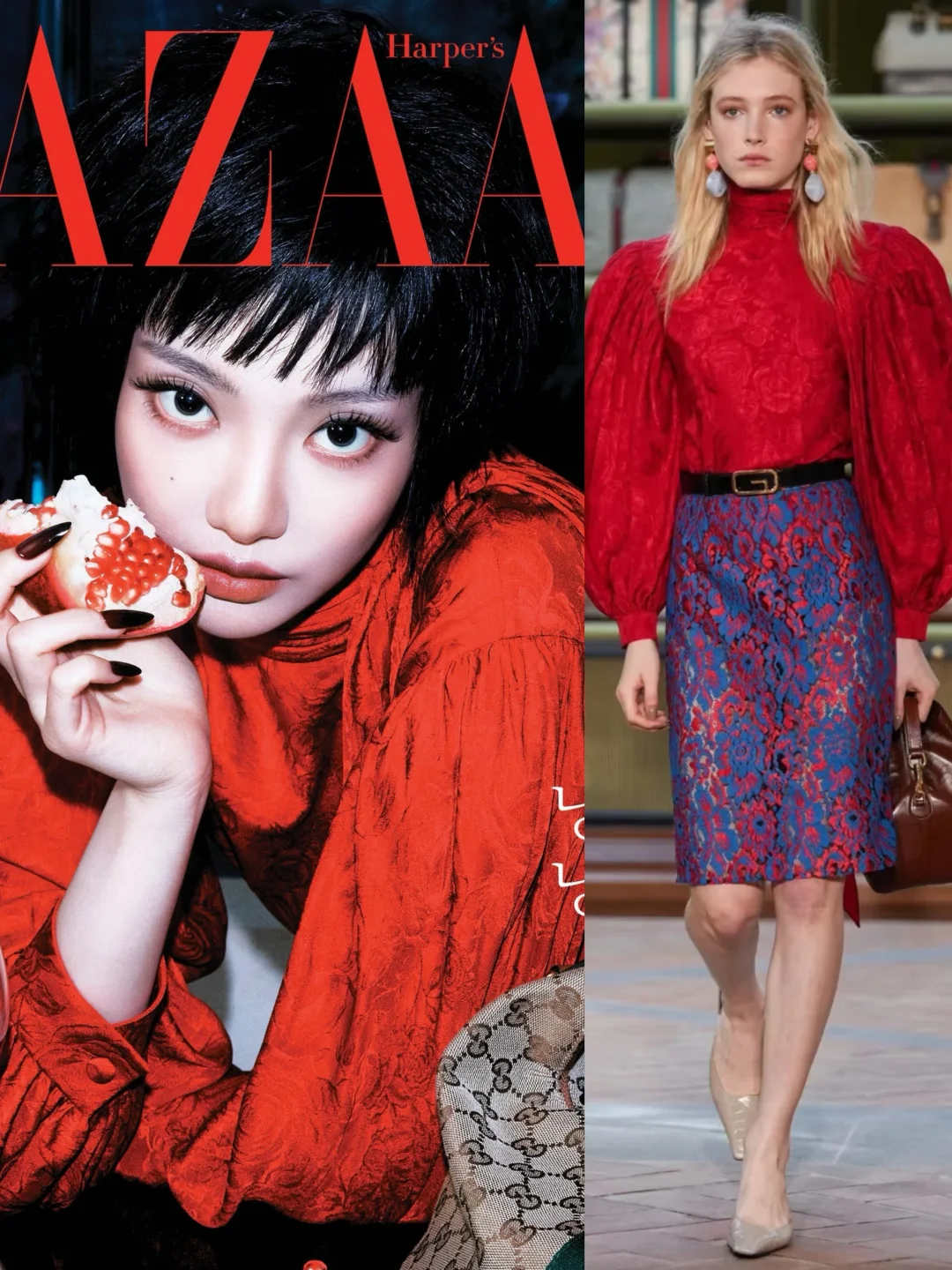 宁艺卓韩版芭莎封面Gucci高规格待遇,一连穿了四套26早春度假系列!
