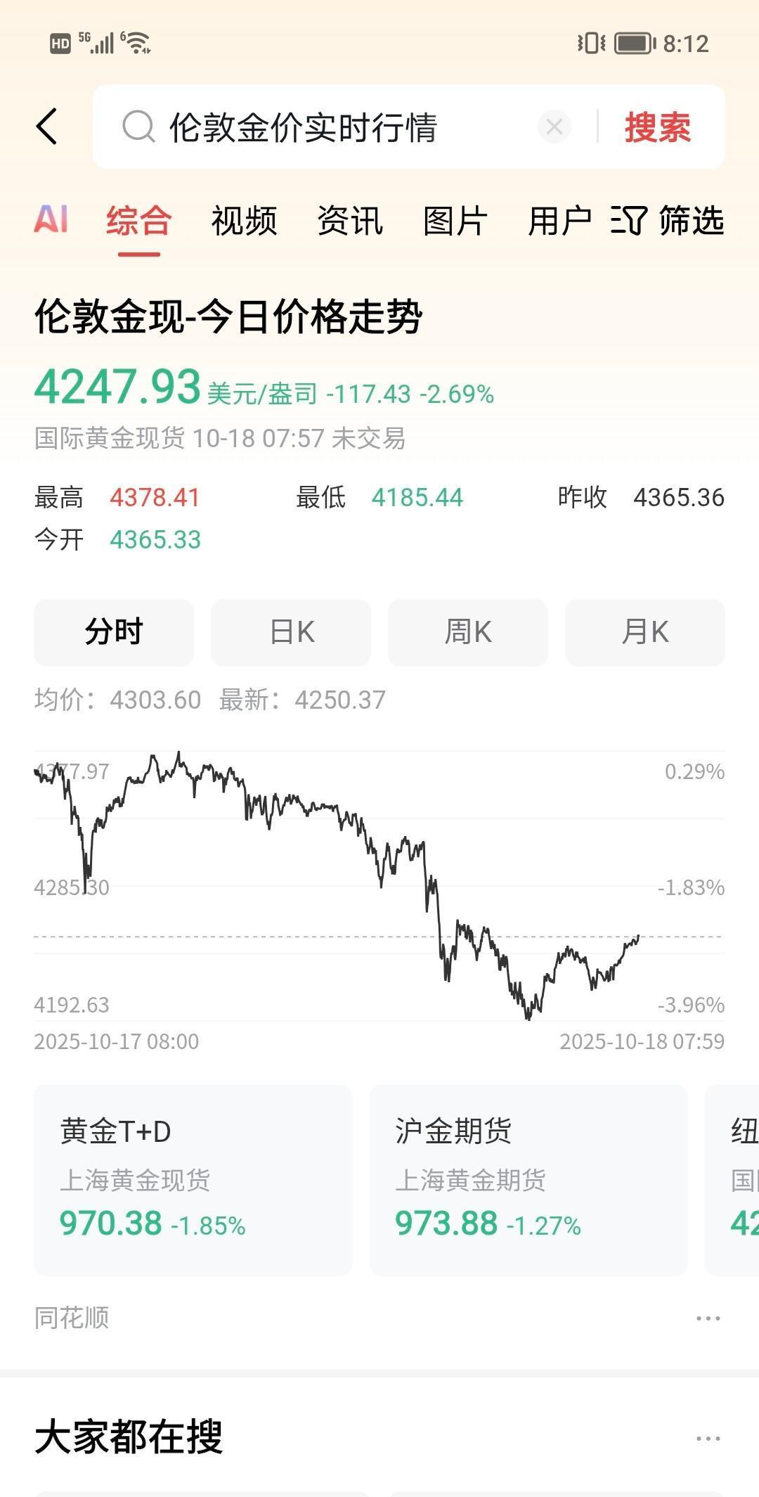 有点突然,黄金开始吐水了,掉了近3%的跌幅一天,从4400美金到4200美金。这主要是特普要会面了,一个消息要黄金一夜变化,说明现在资本市场还是消息市场。就是太多机构都这么来赚钱。但没办法,他们就赚到钱。我估计下周贵金属会大下。其他板块会升。 最近的行情确实太扑朔迷离了,一条消息就能让市场翻天覆地,这种现象已经不是一次两次。尤其黄金市场更是“风吹草动必将波澜壮阔”。这次特普会面传闻一出,大家神经都绷得紧紧的,毕竟市场都在猜测黄金会怎么反应,可谁也没想到黄金直接开始吐水了。一天掉3%的跌幅,很多人都被这一变化砸了个措手不及。 其实这种事情背后透露的无非是资本市场的性质——它本来就是一个消息驱动的存在。黄金本身多年来都是资金避险的重要选择,敏感性非常高,尤其在当下全球政治经济环境不稳定的情况下。任何一点可能性的变动都会直接传导到贵金属市场,反应特别快。特普会面这事儿引起了大规模的市场骚动,机构自然不会放过这个机会,如果是资金量掌控比较大的机构,趁这种市场情绪的机会大幅操作,收获的利润是必然的。普通投资人就没办法了,只能承受资本市场背后推手的风波。 黄金价格跌到4200美金,其实对长期投资而言并不意味着什么太大的问题,毕竟相比年初的低点,还是处于较高的区间。对于热衷于短线炒作的投机客来说,这种波动确实容易让操作变得措手不及。现在国际形势不稳定,任何一点风吹草动都可能让价格产生大幅变动,所以短期内黄金市场安全性相对降低。而我估计,随着更多的资本涌入其他板块,贵金属可能会迎来进一步调整,下周的行情可能还会有更大的下行压力。 那么哪些板块会升呢?我觉得可以关注一些企业盈利能力较强的领域,比如刚开始有小回暖、但在全球经济中还有增长空间的新能源板块,或者是受到政策利好扶植的新兴科技产业。从贵金属转移资本的过程里,我们能够看到资金可能寻找更稳定、且收益增长较快的标的,这其实是一个信号。对于长期投资的人来说,这是一个好机会,可以趁贵金属价格低点入场,也可以考虑逐步增加一些成长型的板块的配置。 但是性格决定收益,很多投资者都希望证券市场能够趋于固定的规则,而不是被消息左右。可惜这事说起来容易,真正要规避风险却很难。如果硬要说这个市场的规律,那恐怕只有能:你要始终保持灵活,应对变化才能在市场中站稳脚跟。 面对这个黄金吐水的现象,下一步操作确实值得大家深思:如果你是短线交易者,不妨谨慎观望下周贵金属市场里资本流动的趋势;如果你是长期投资者,或许可以趁跌在黄金市场分批建仓,期待长期回报。如果你还没有进市场,也可以利用这个机会多关注其他板块,毕竟现在其他领域可能会有阶段性优质投资机会。之后市场流动性逐渐明确化,谁知道是不是你的进场好时机呢?这就是资本市场的魅力,机会永远存在,但你能不能抓住就要看经验、胆识和判断力了。 黄金现价 黄金大盘价行